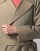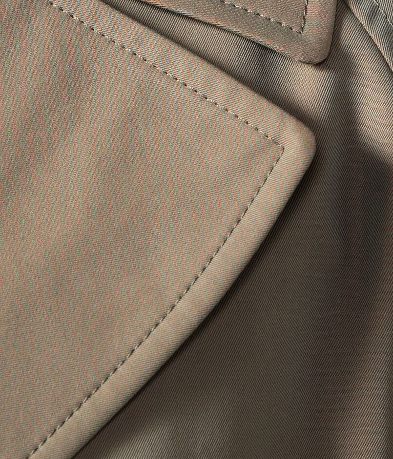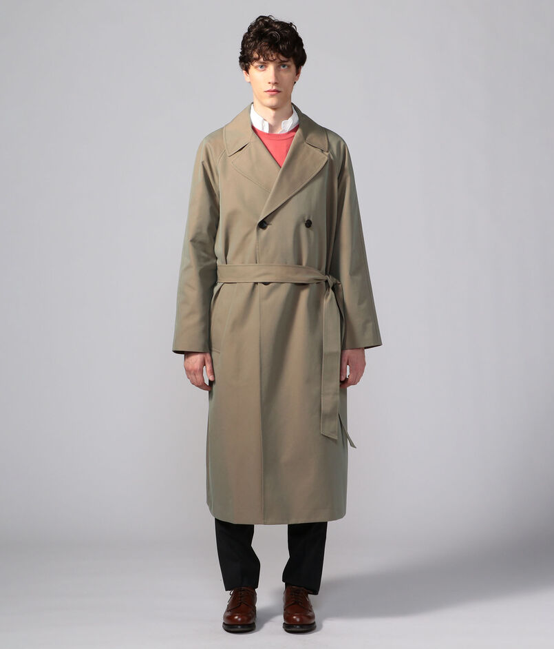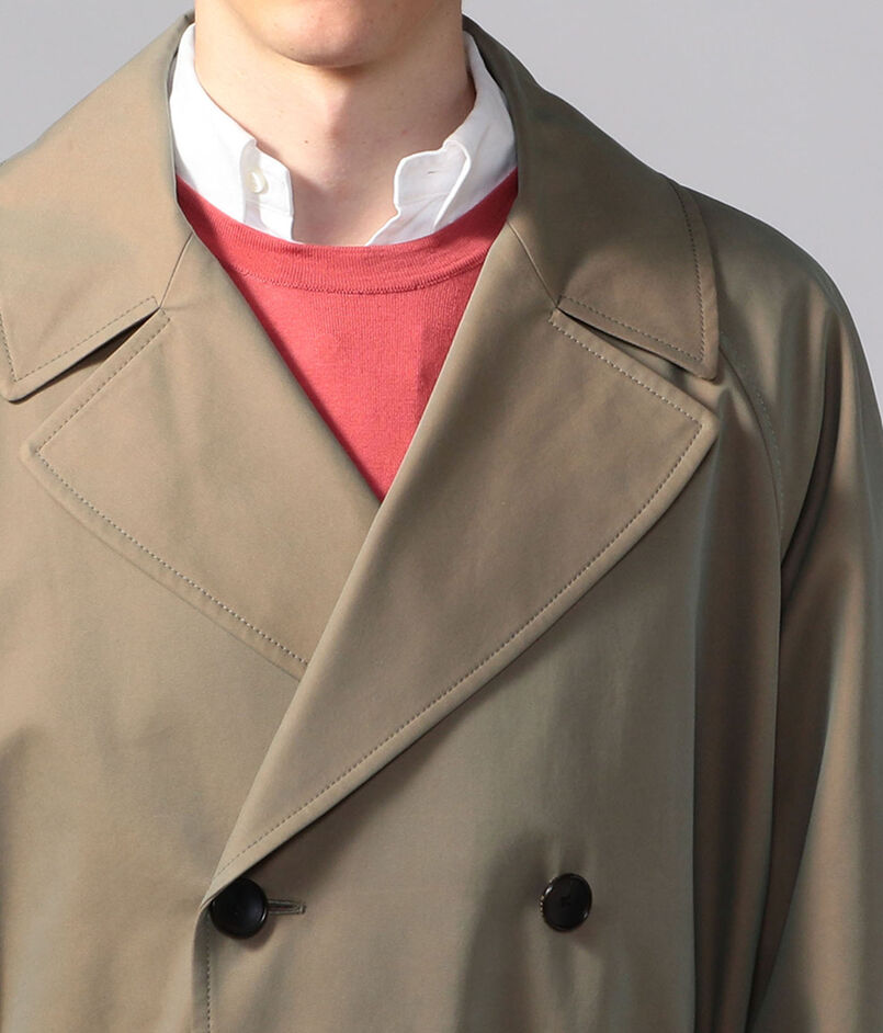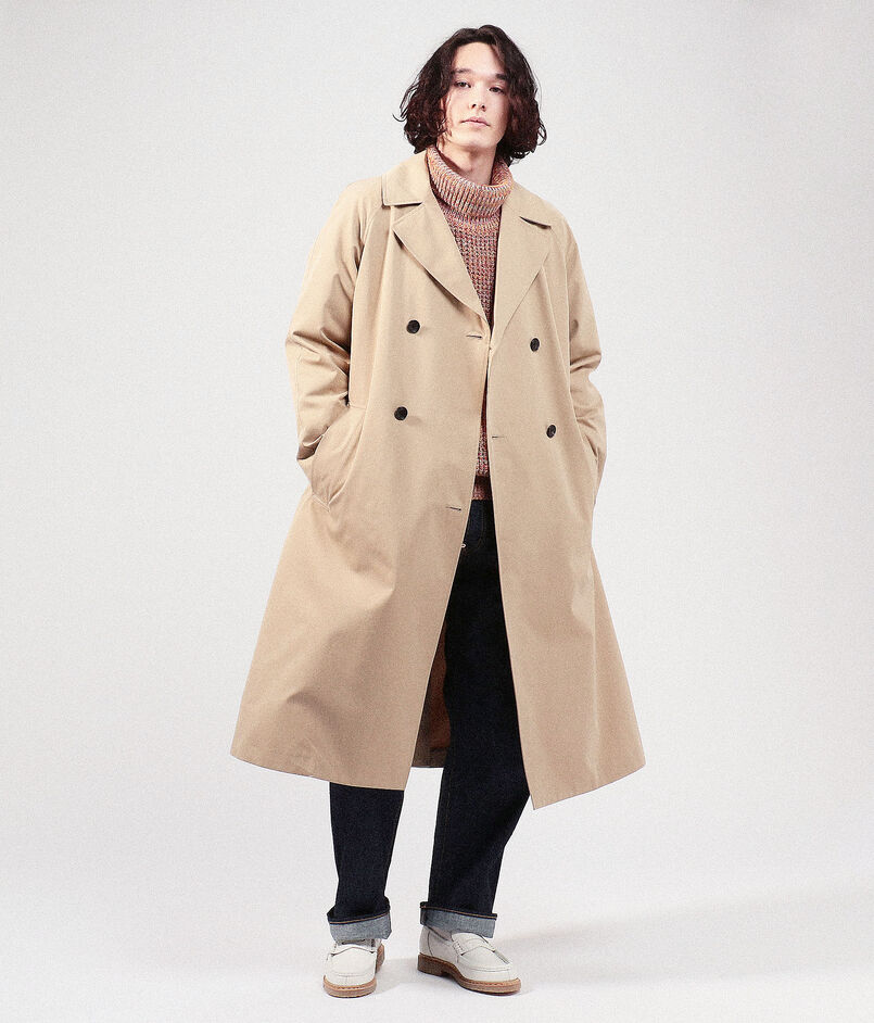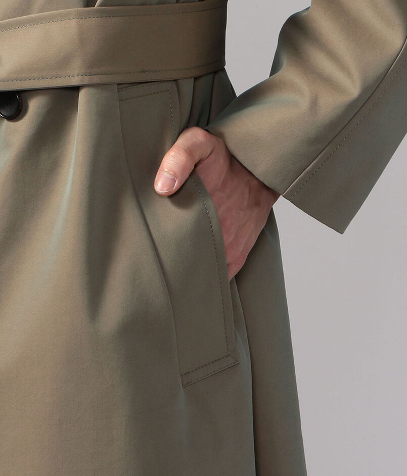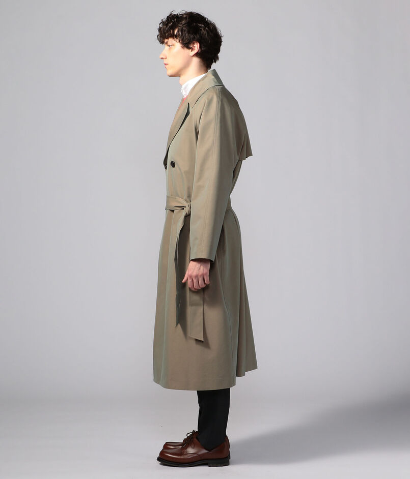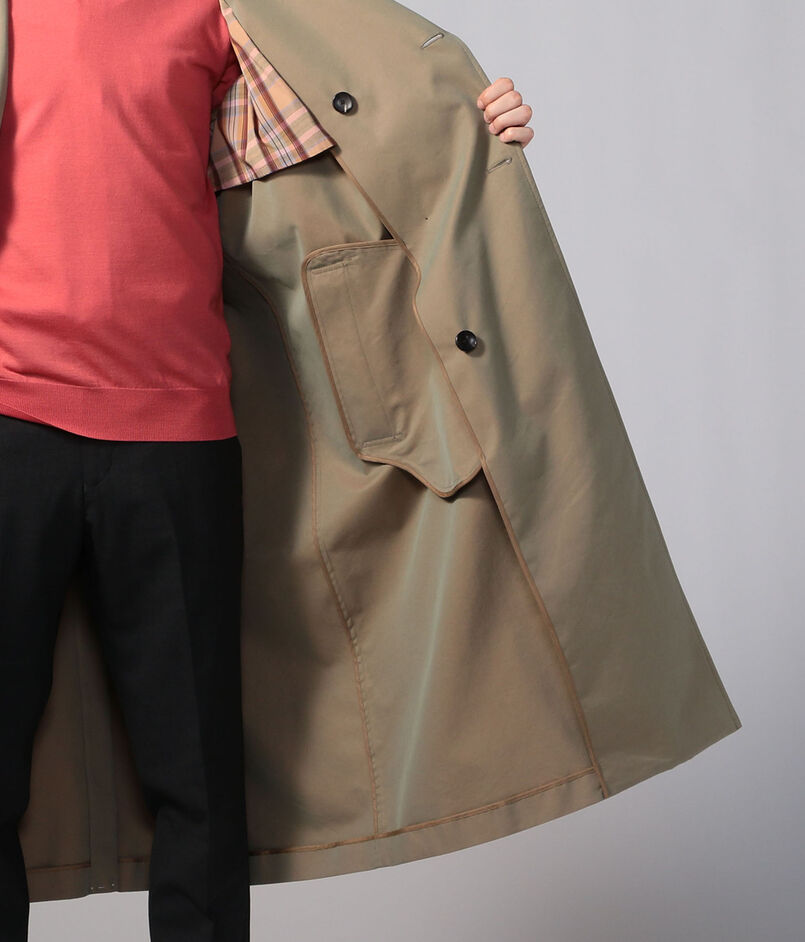スーピマコットンとポリエステルで織られたシャンブレー素材を使用したトレンチコート。