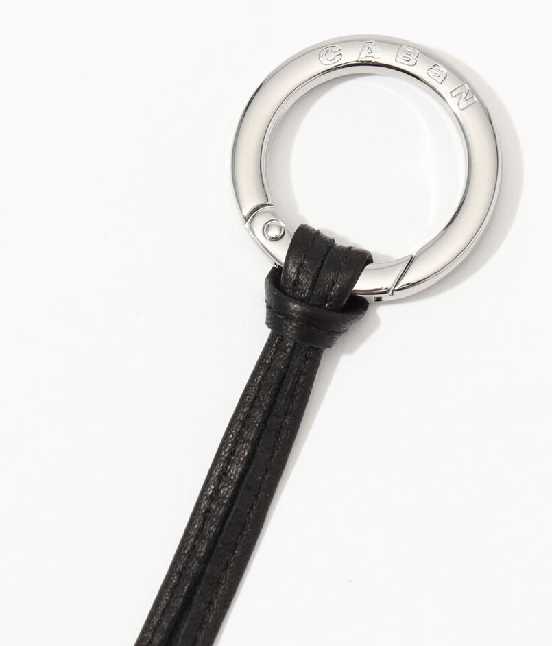 ブランドロゴ入りリングカラビナ付きです。