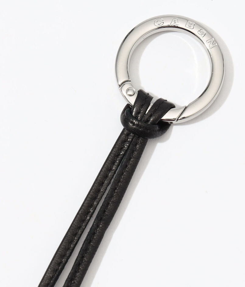 ブランドロゴ入りリングカラビナ付きです。