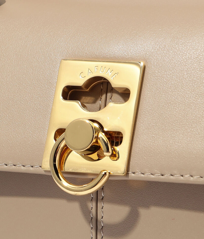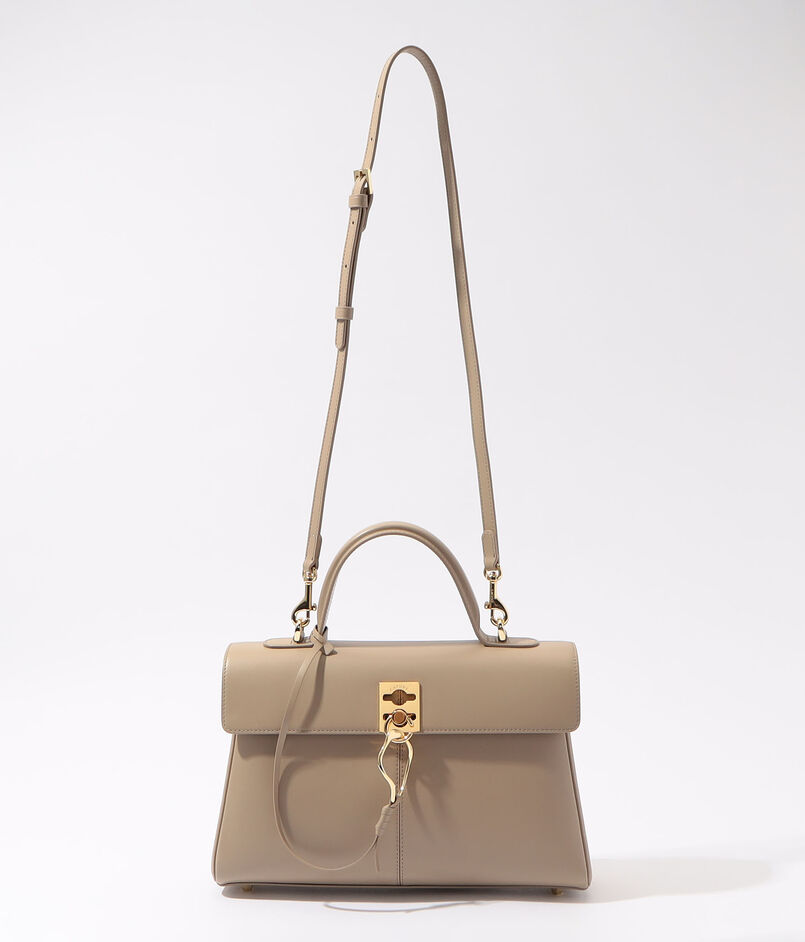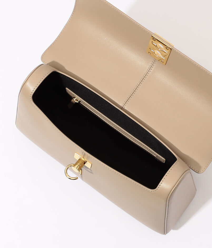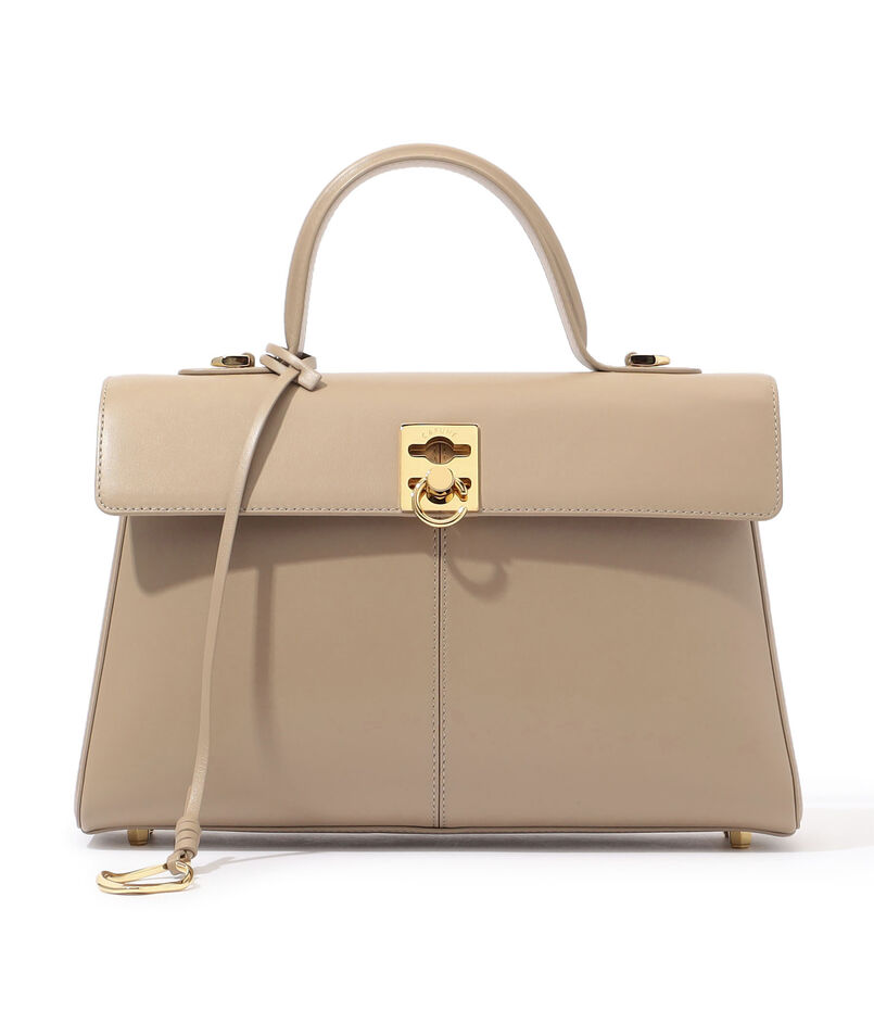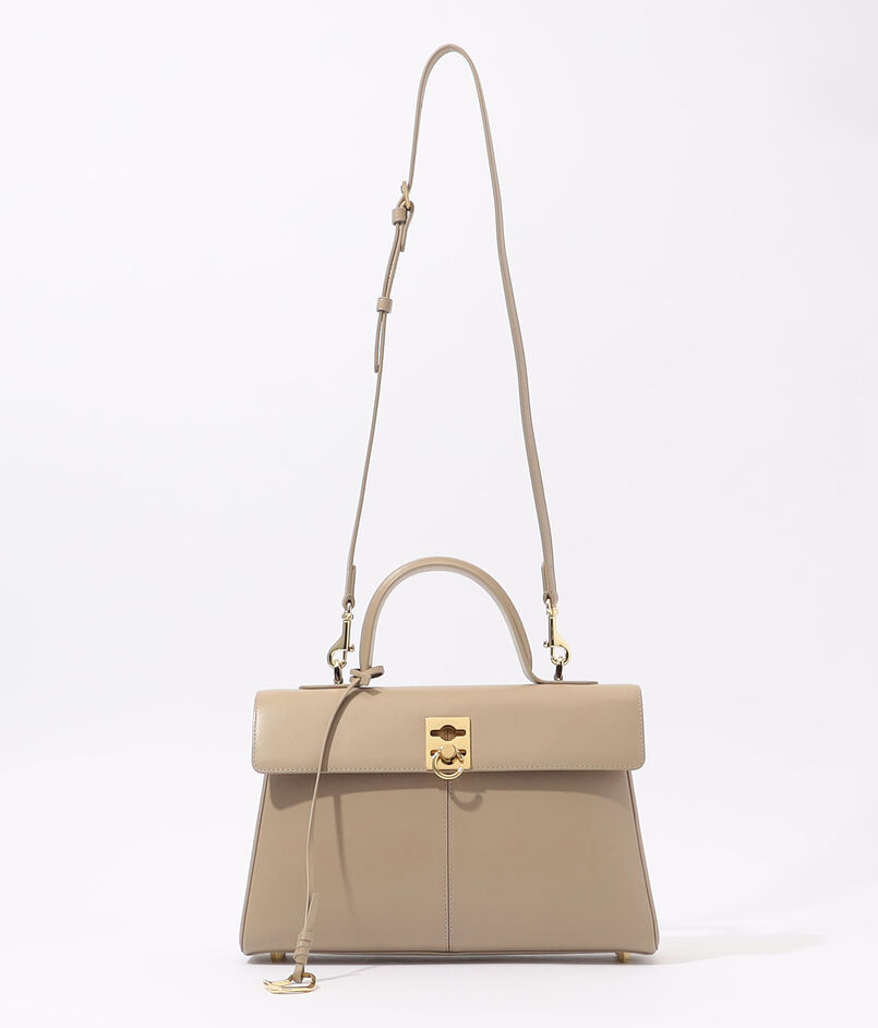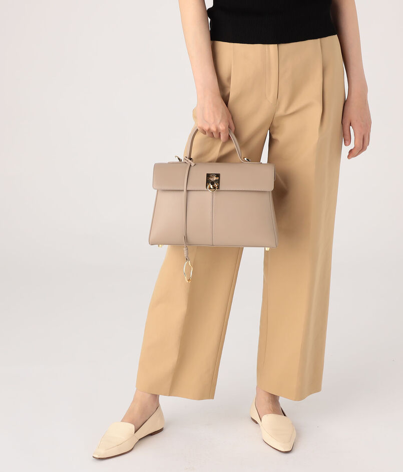スムースレザーの質感にゴールドの金具が映え、エレガントで洗練された印象を演出します。