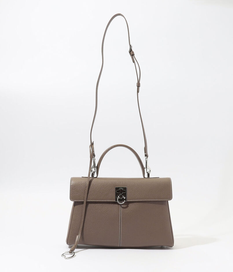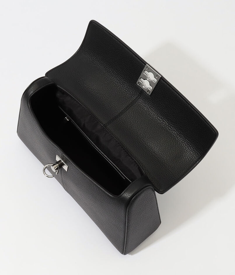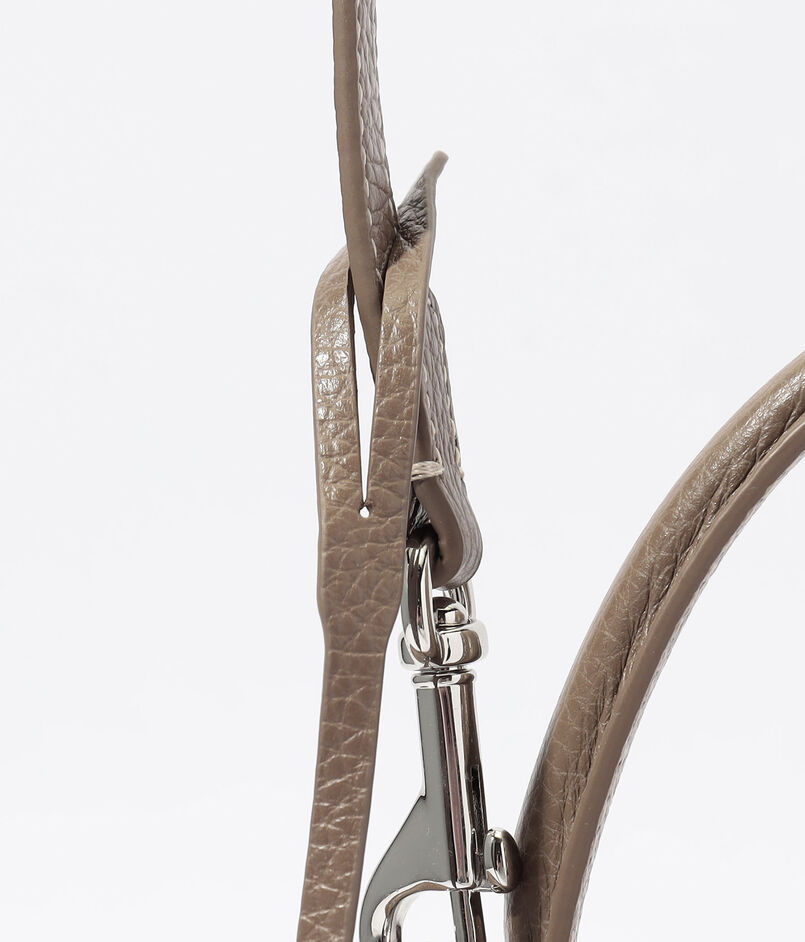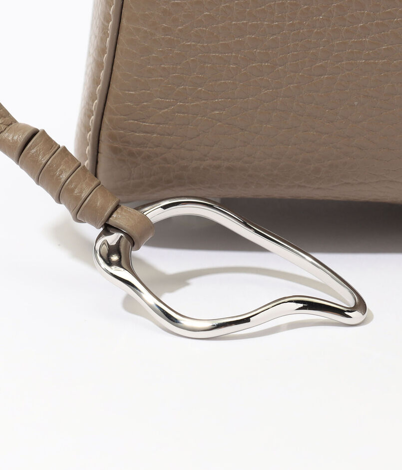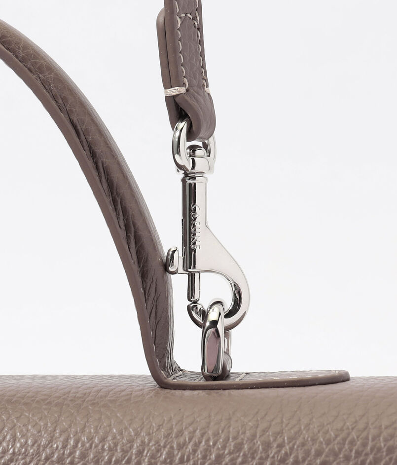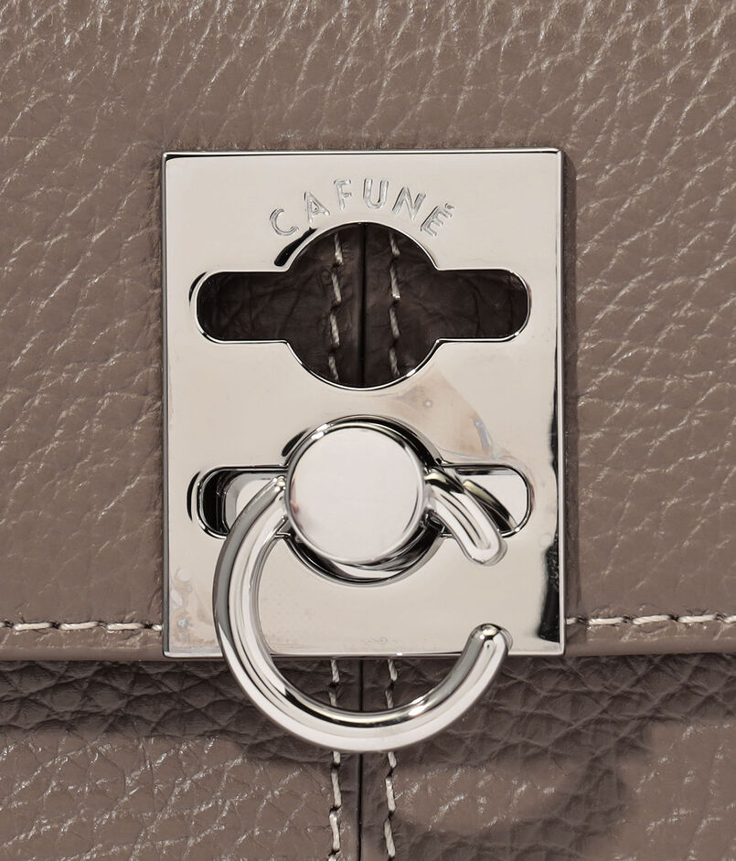 傷や汚れに強いイタリア製の上質なシュリンクレザーに、シグネチャーのシルバー〈C-Lock〉金具を組み合わせ、上品でニュアンスのある印象に仕上げられています。