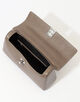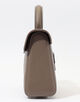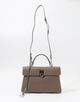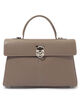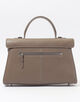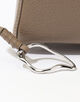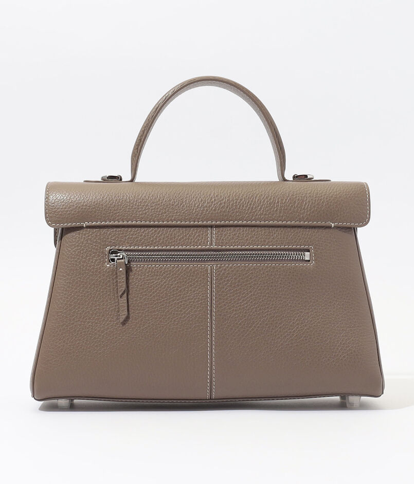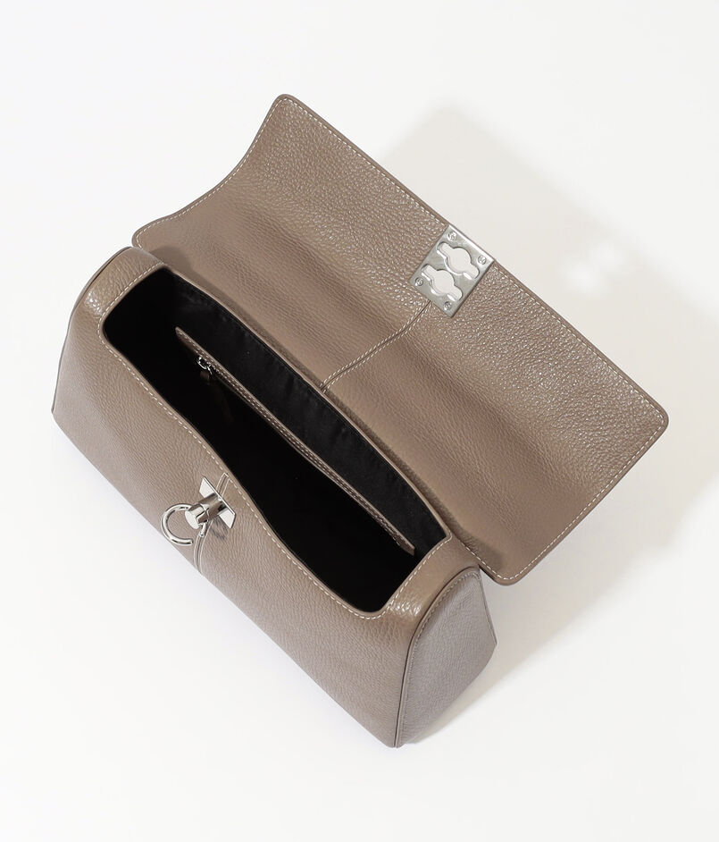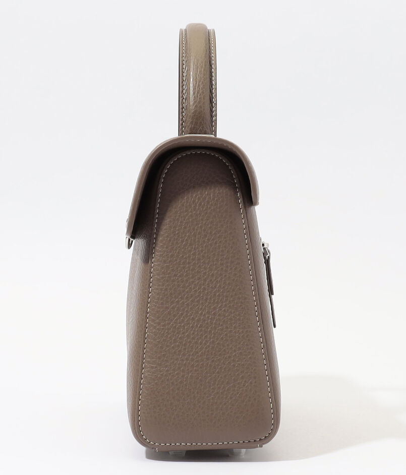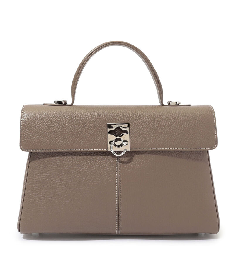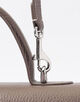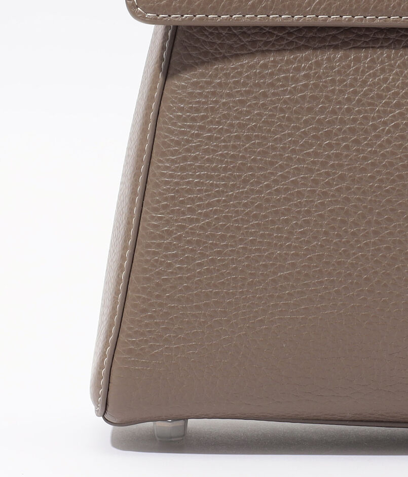 傷や汚れに強いイタリア製の上質なシュリンクレザーに、シグネチャーのシルバー〈C-Lock〉金具を組み合わせ、上品でニュアンスのある印象に仕上げられています。