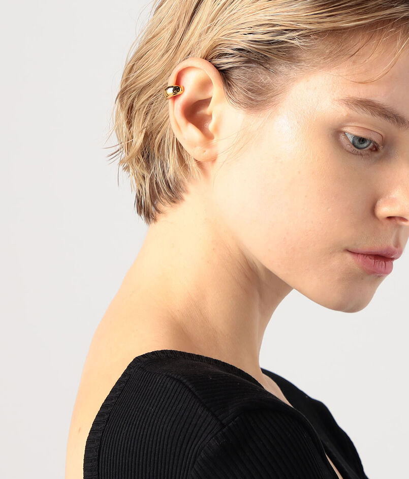 耳を包み込むフォルムとミニマルなデザインは、他のイヤーカフやイヤリングとの組み合わせも楽しめます。