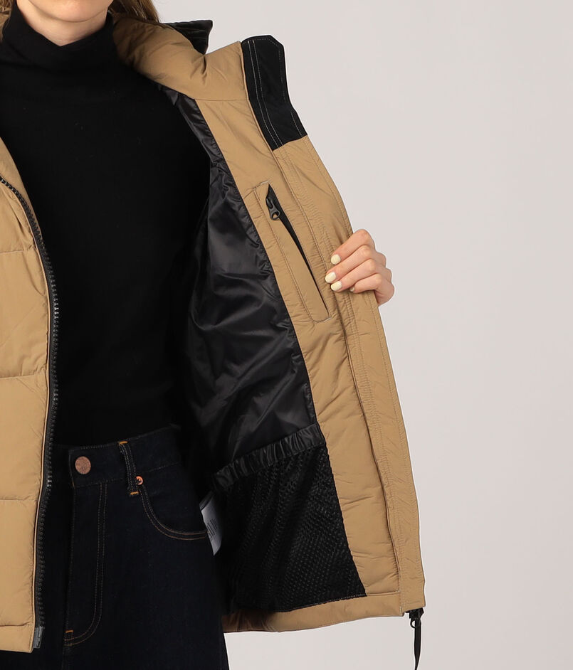 表地:ナイロン100% 裏地:ポリエステル100% リブ部分:ポリエステル61% レーヨン35% ポリウレタン4% 中わた:ダウン90% フェザー10%