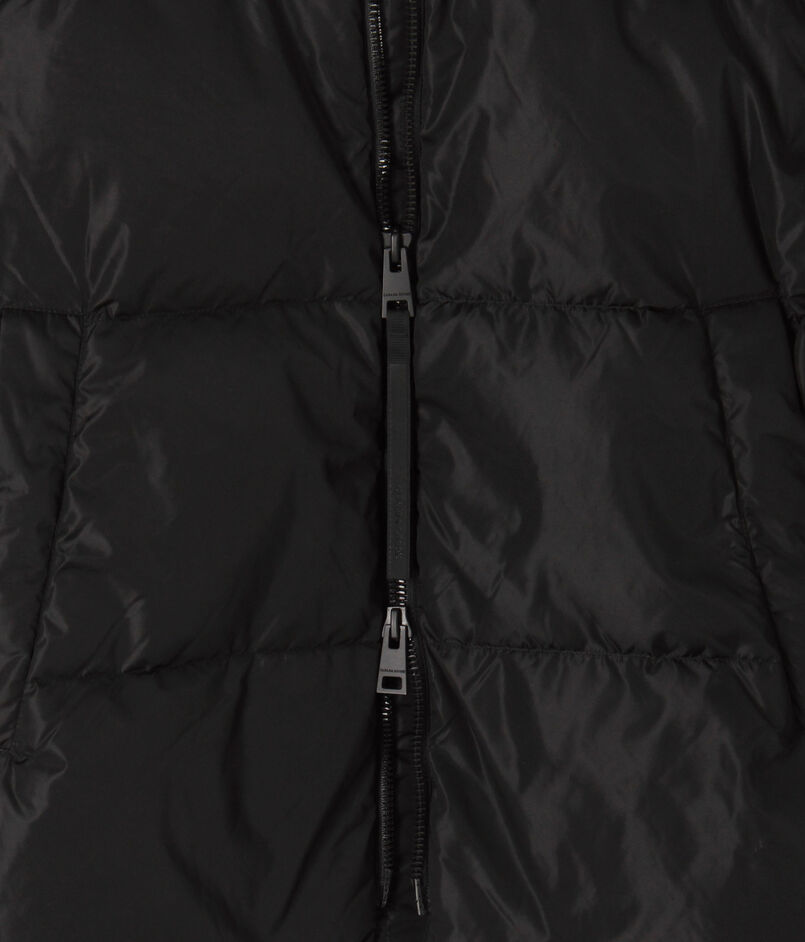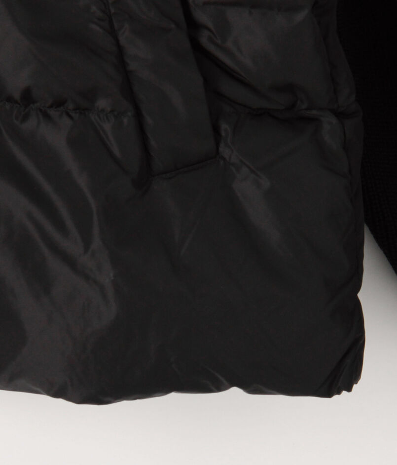 ダウン入りパネルにはパフォーマンスナイロンをあしらい、必要な保温性と上品な光沢感をプラスしています。