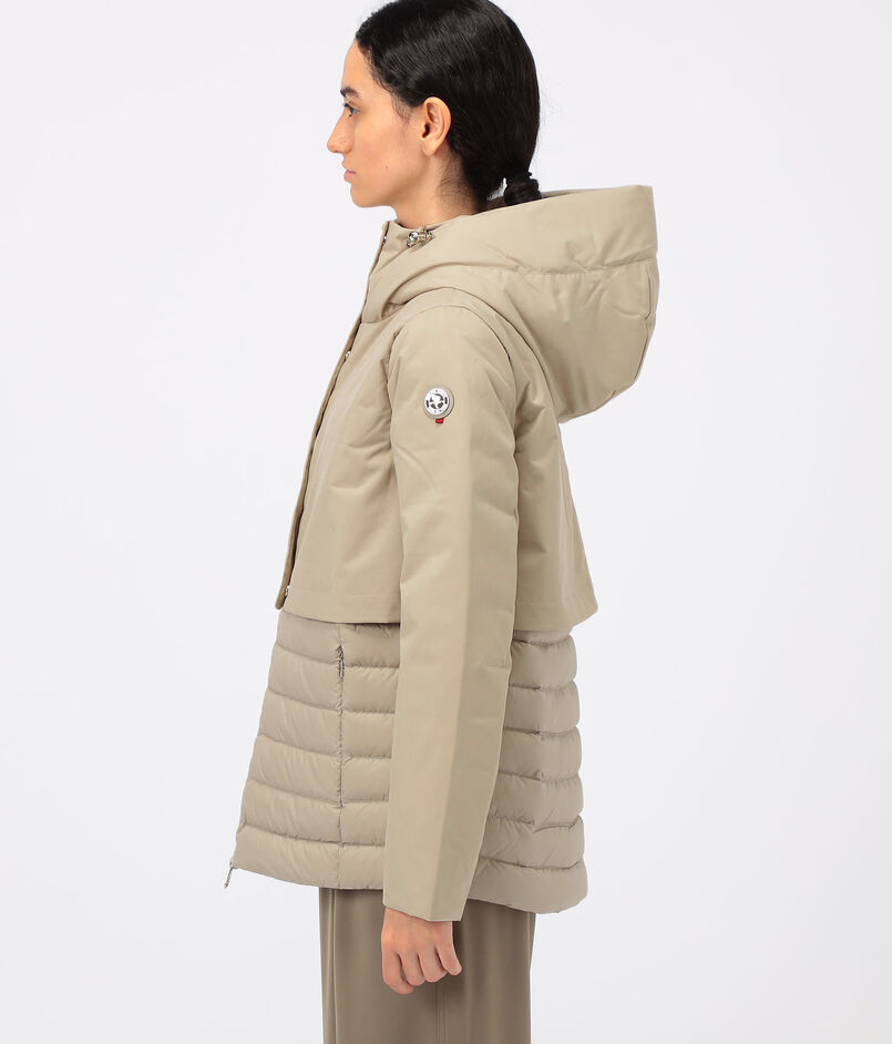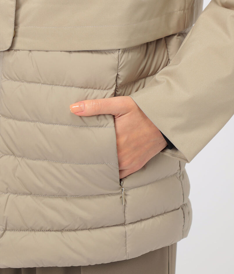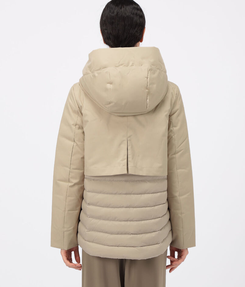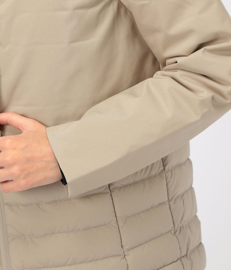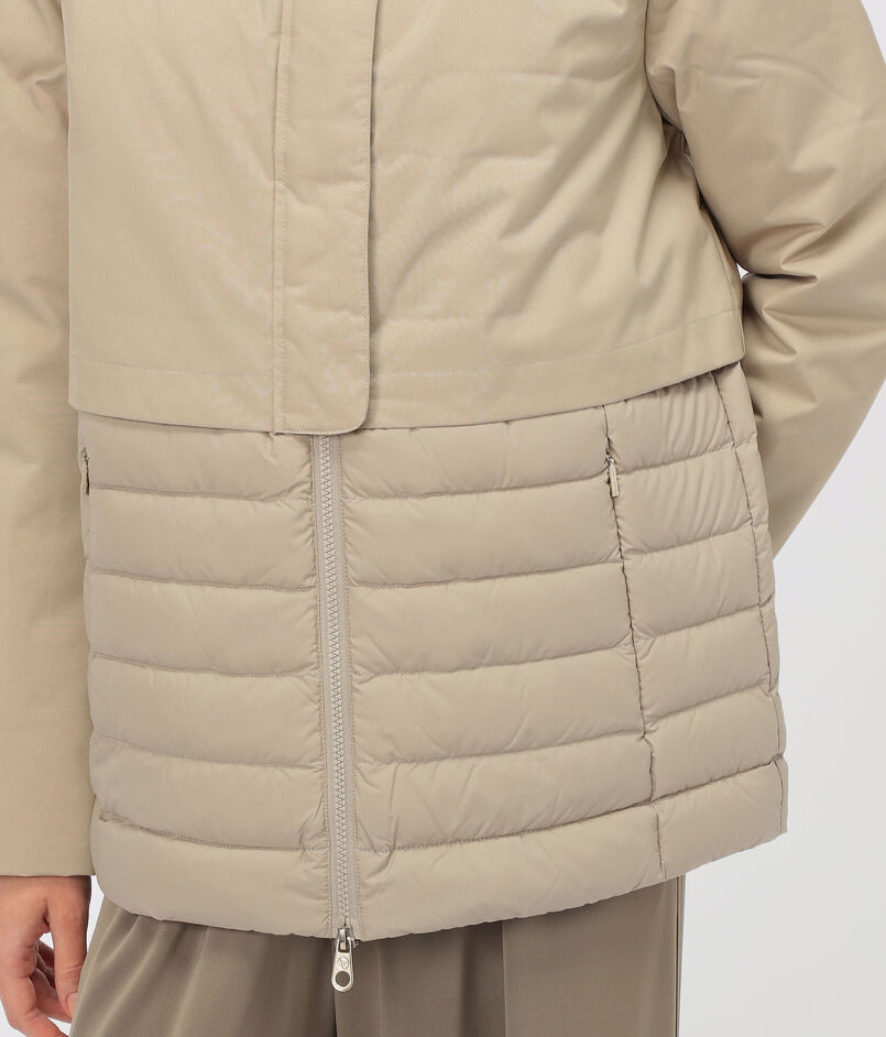 キルティング地との切り替えデザインが、クリーンでエレガントな印象のダウンジャケット。