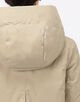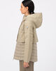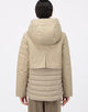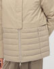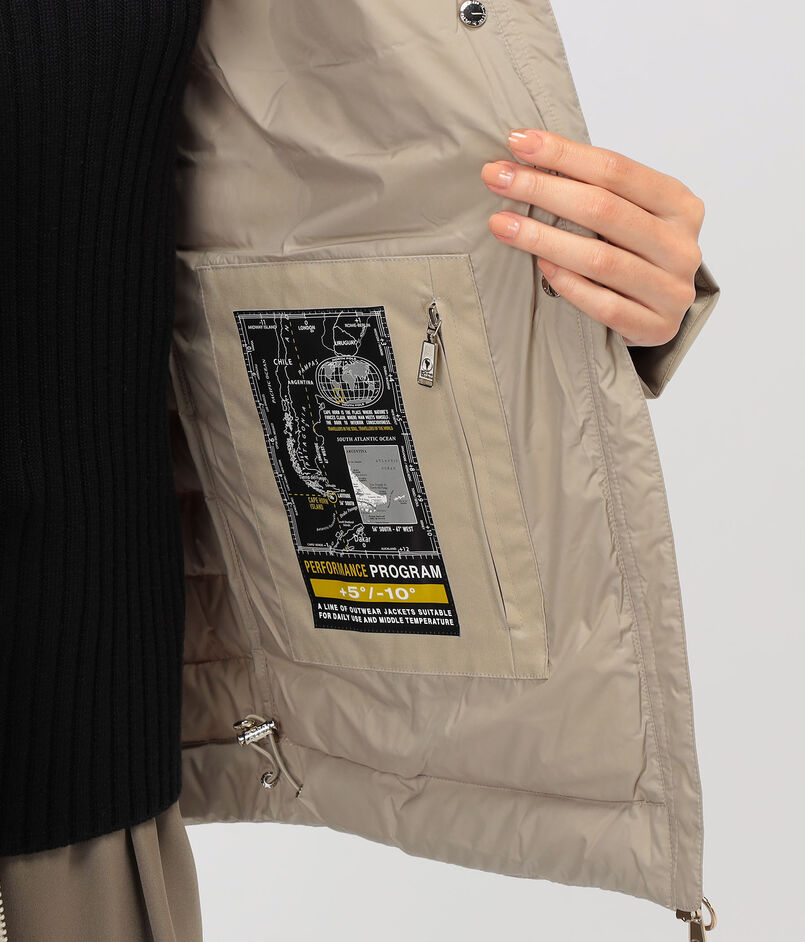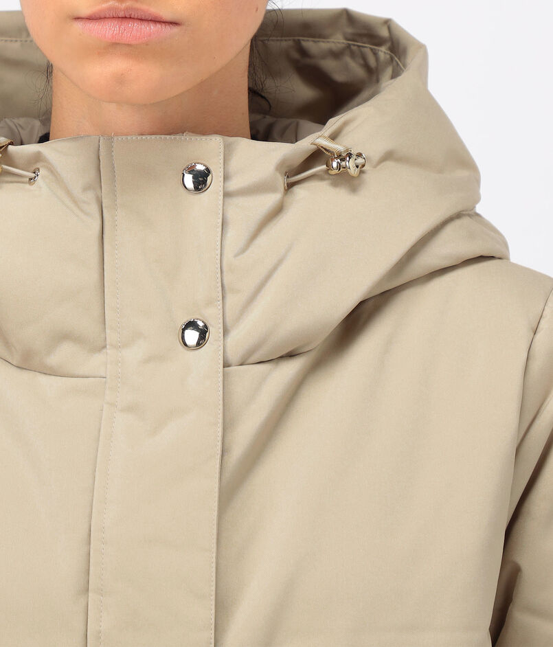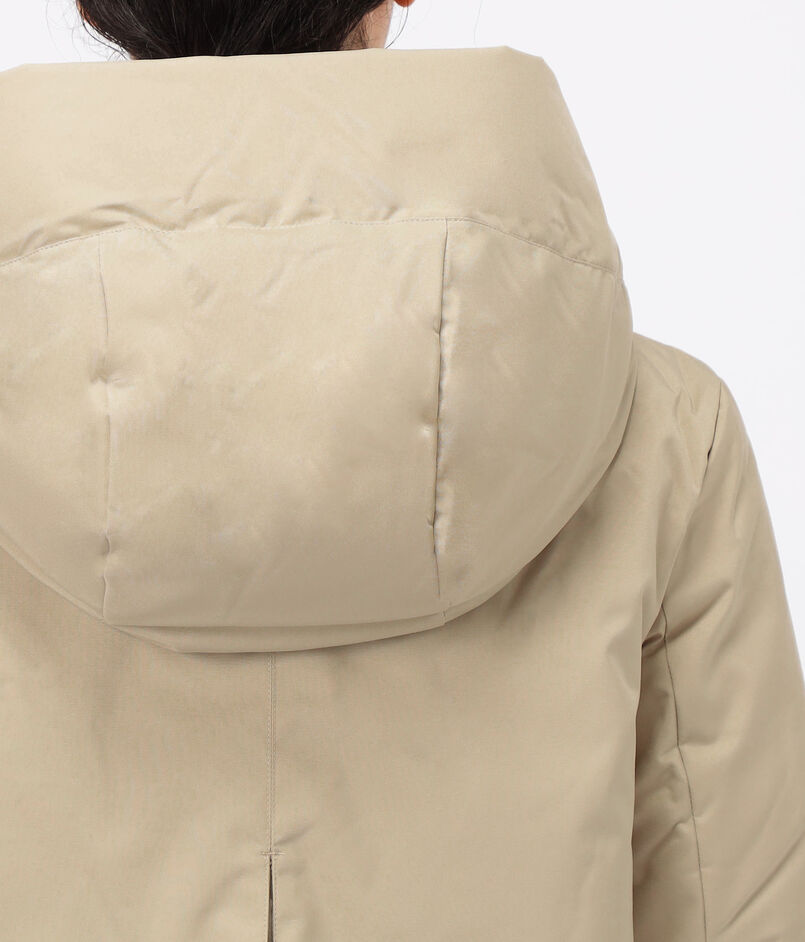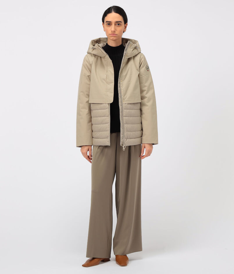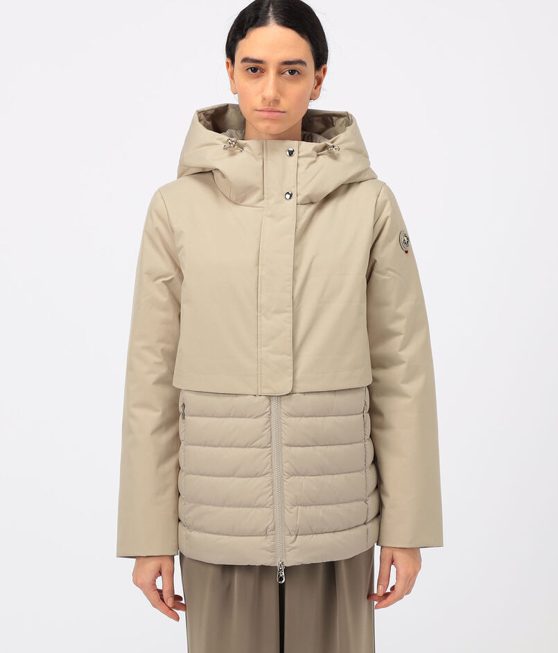 キルティング地との切り替えデザインが、クリーンでエレガントな印象のダウンジャケット。