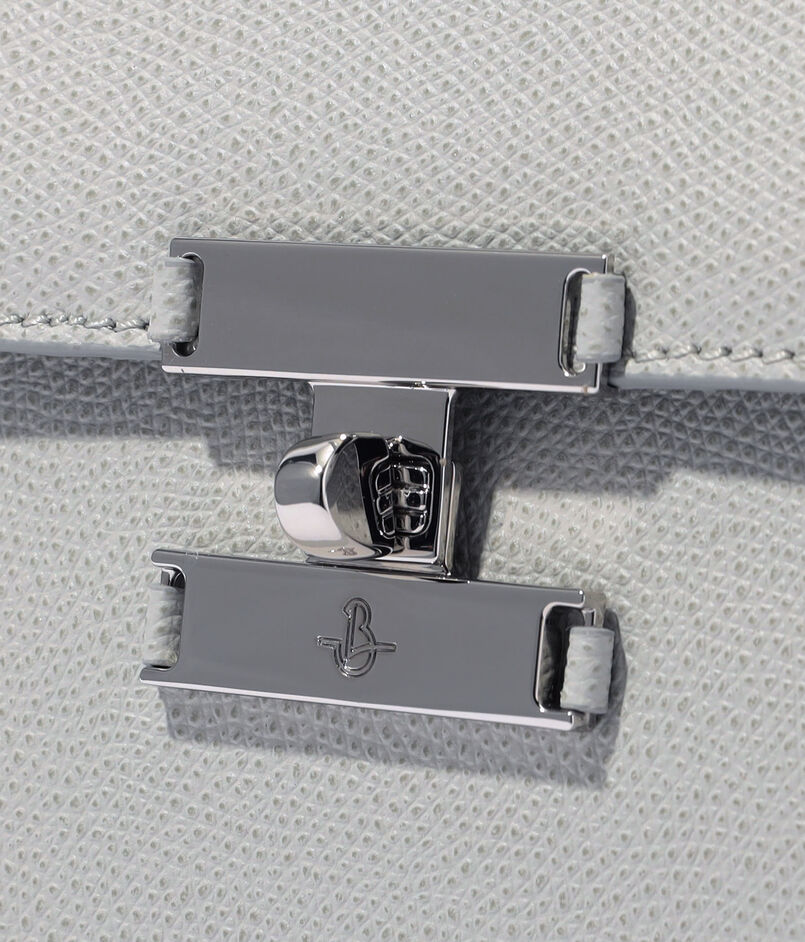 シャープでスッキリしたフロントデザインとアイコニックな金具をポイントに、シックでエレガントな雰囲気に仕上げられています。