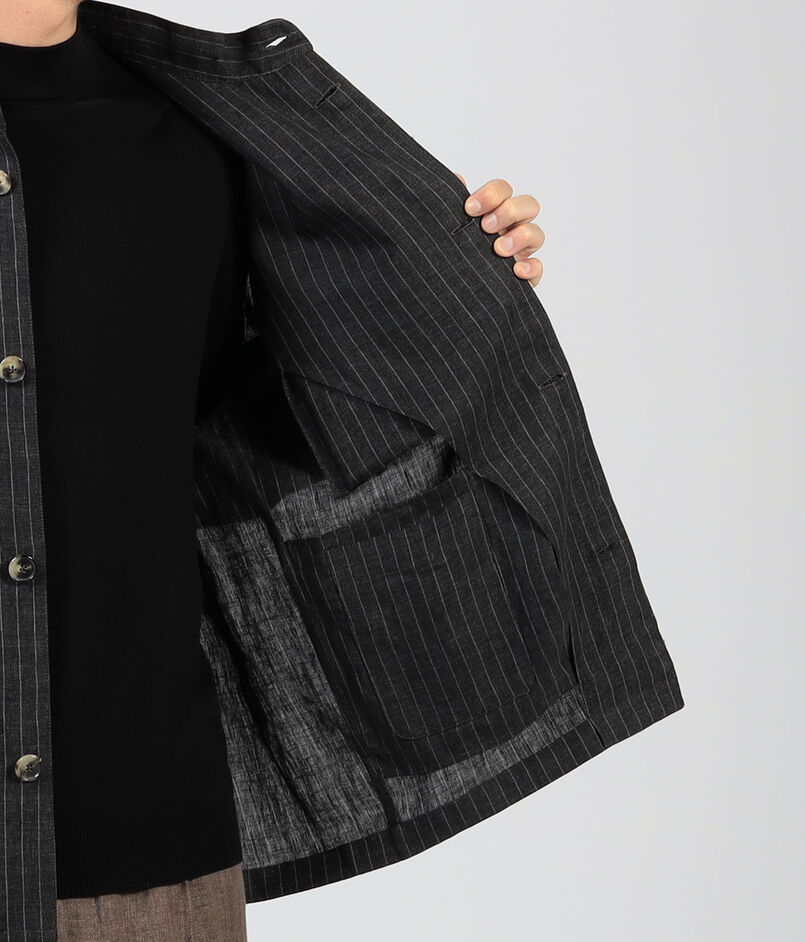 CARUSO リネンストライプ スタンドカラーブルゾン