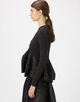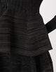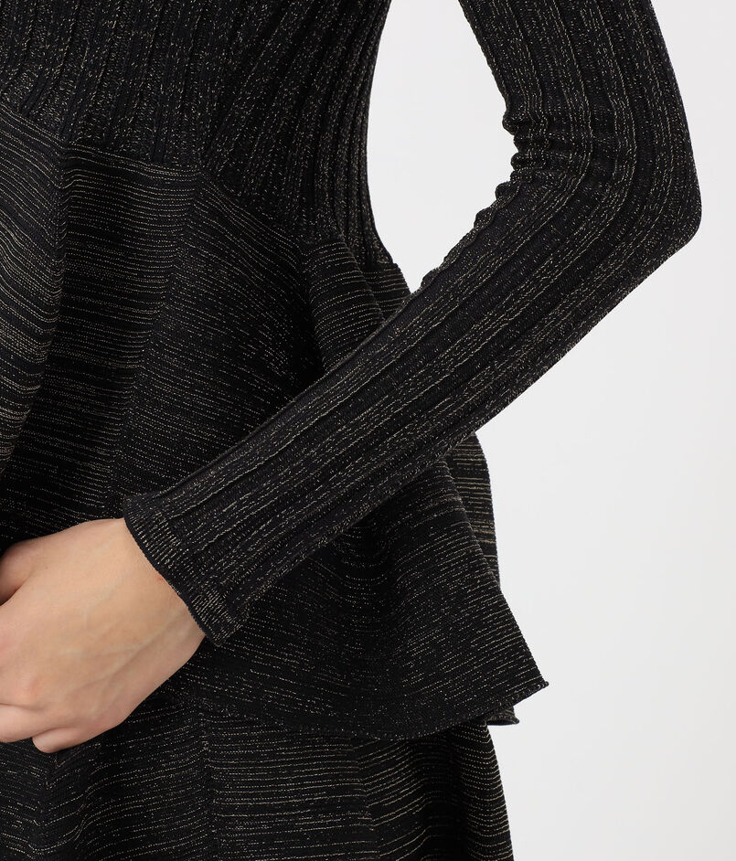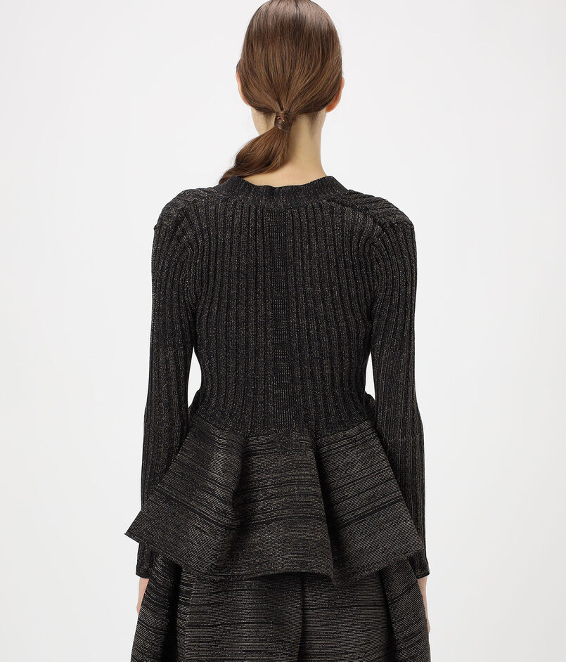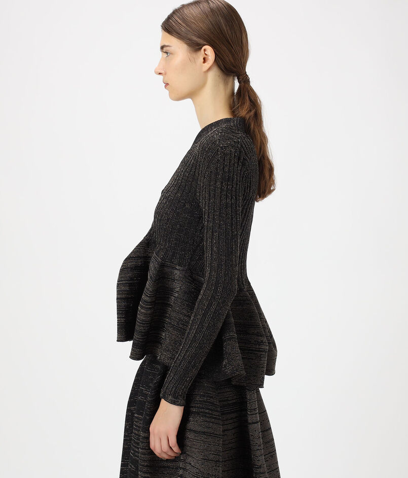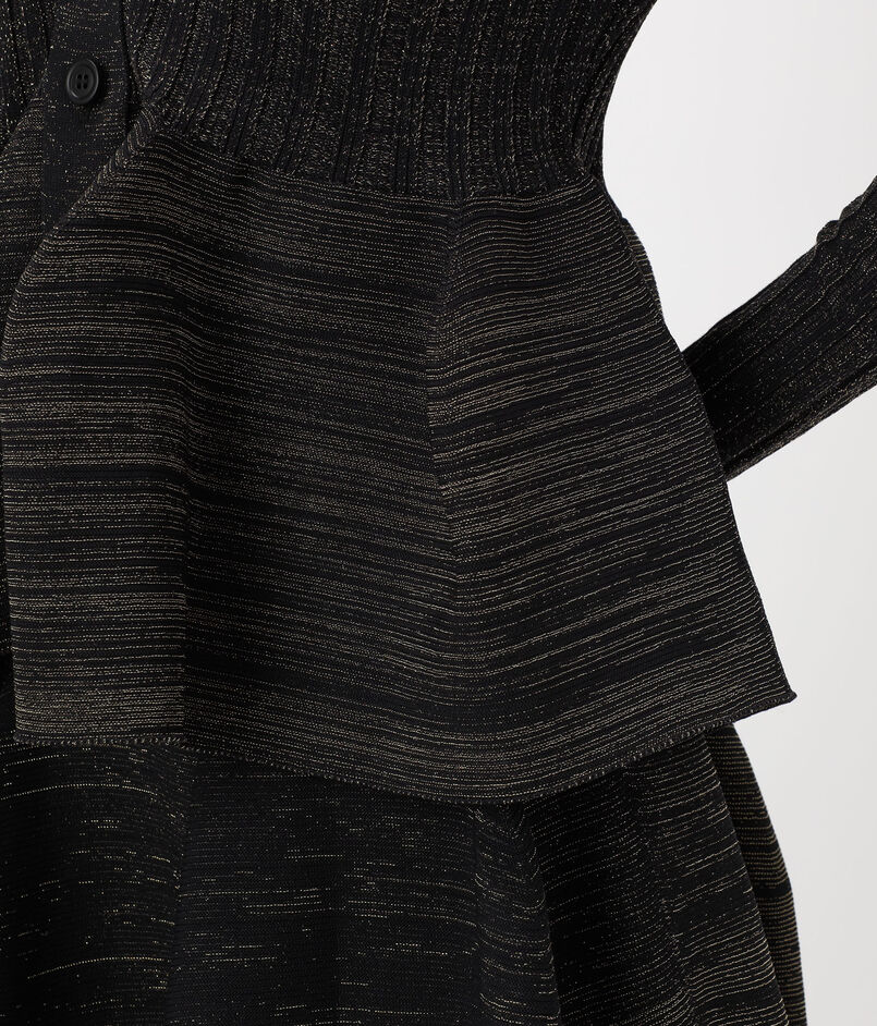 タイトにフィットする身頃と、コンピュータープログラミングによって作られた構築的なペプラムのシルエットが印象的なデザインです。