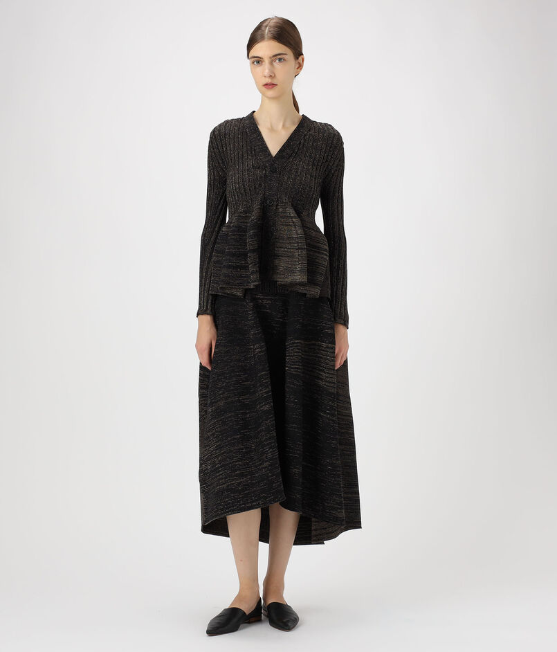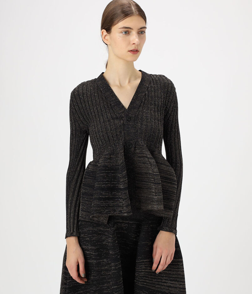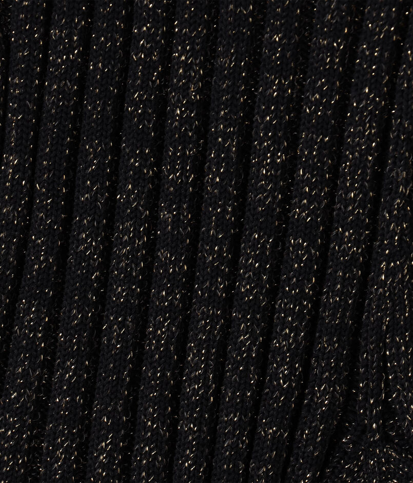 ラメ糸が全面に編み込まれたグリッター素材で、スタイリングを華やかに彩ります。