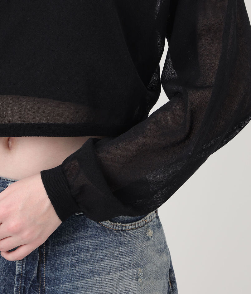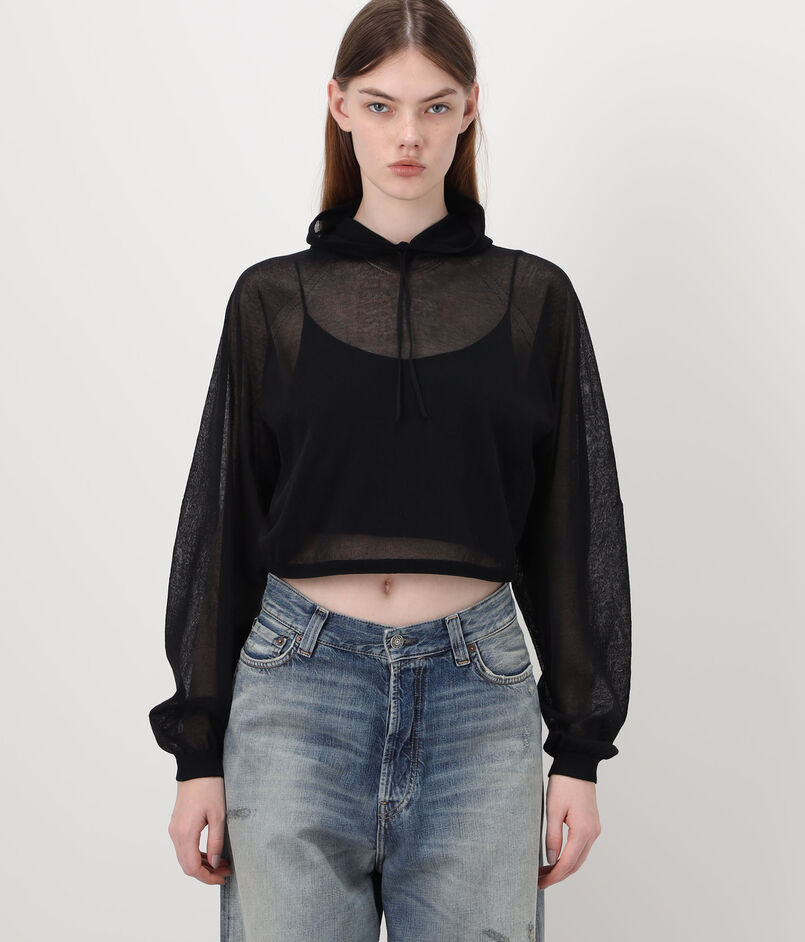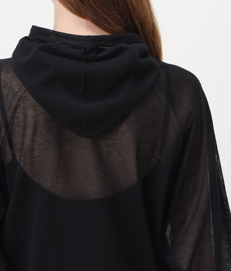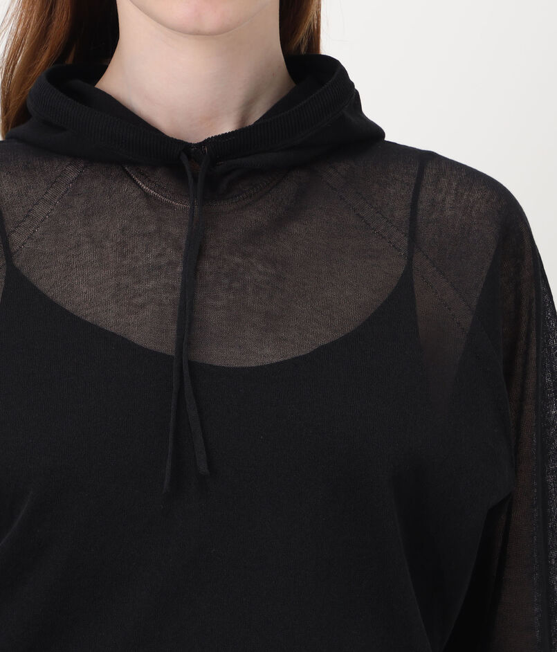 繊細な編地が絶妙に肌を透かす、薄手のフーディー。