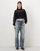 スポーティーなフーディを、クロップド丈の洗練されたデザインとセンシュアルな素材でエレガントなムードへと昇華させた、モードにもカジュアルにもフィットする大人の女性のための一着です。
