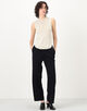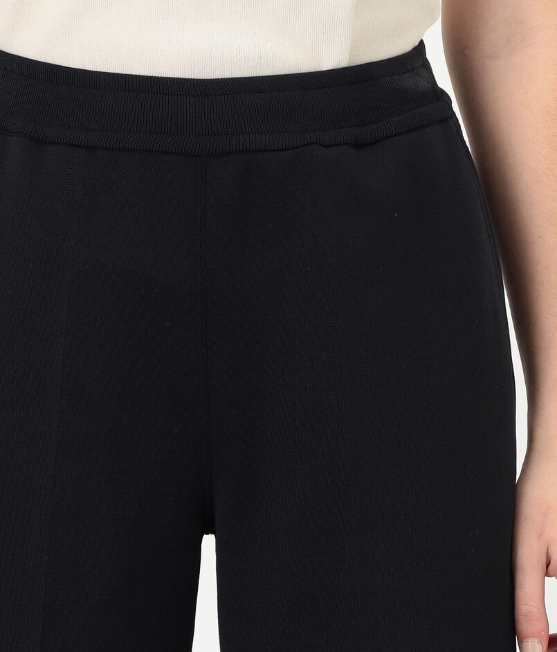 ミラノリブによる柔らかなハリ感と軽やかさが特徴のセミワイドパンツ。