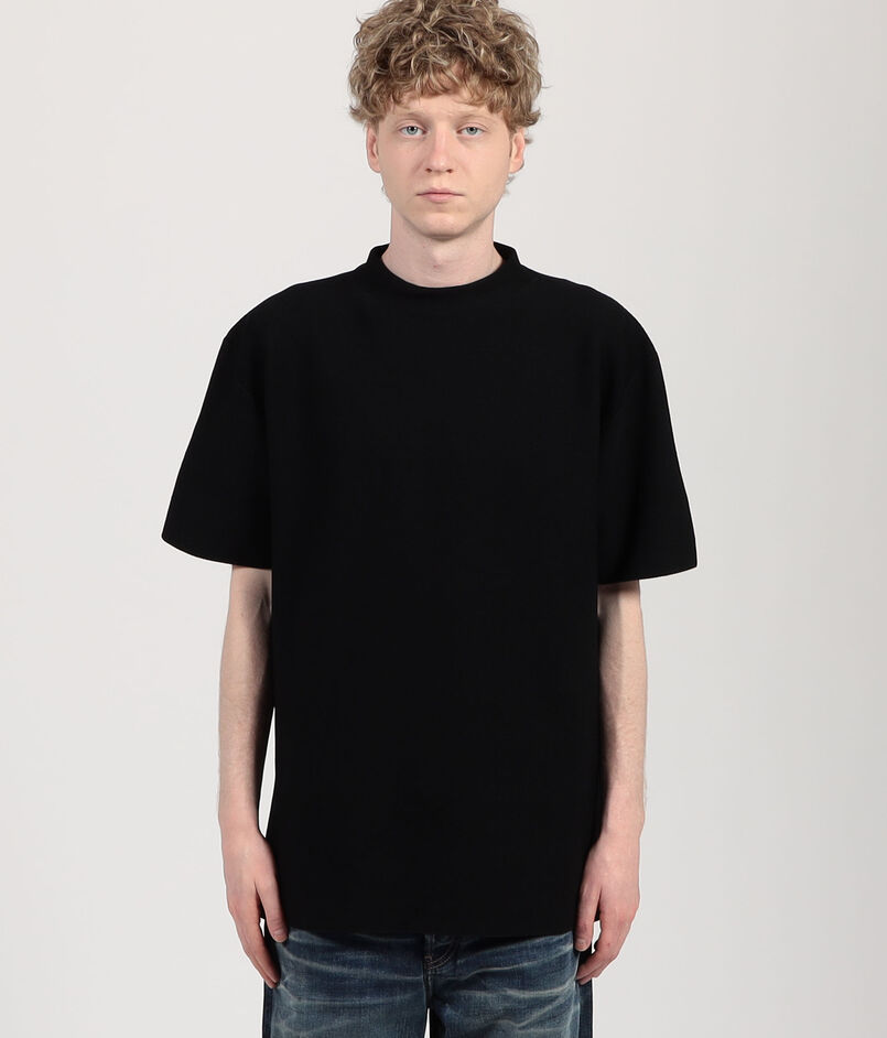ミニマルなショートスリーブモックネックTシャツです。
