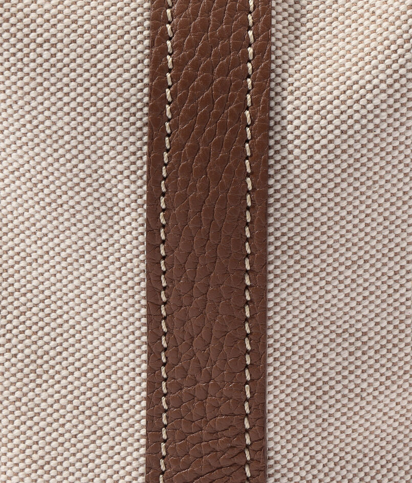 素材は同ブランドのフィロソフィーの中でも言及されているグレインレザーと1970年代のメゾンブランドのリクエストにより作られたキャンバスのコンビ。