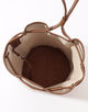 カジュアルやリラックス感のある装いにマッチする巾着バッグ。ほどよいサイズ感で休日使いに最適です。