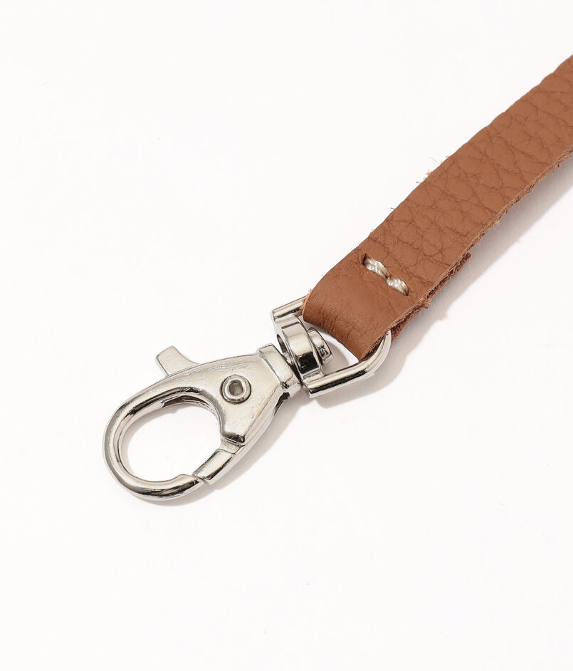 片方のストラップを外し、リング(バックル)に通して折り返すことで、長さを半分に調整可能です。