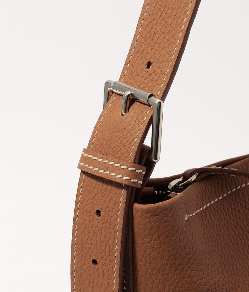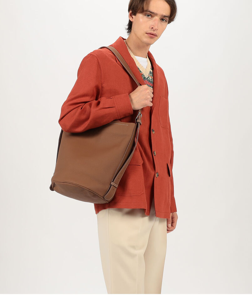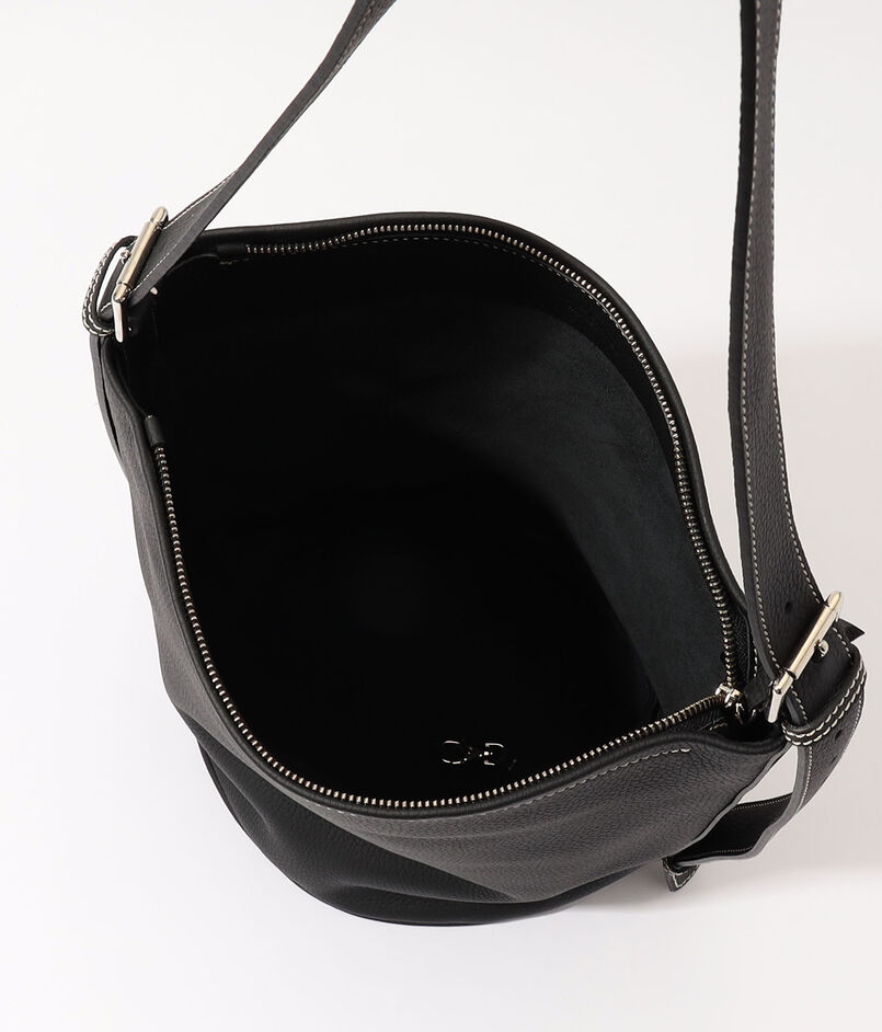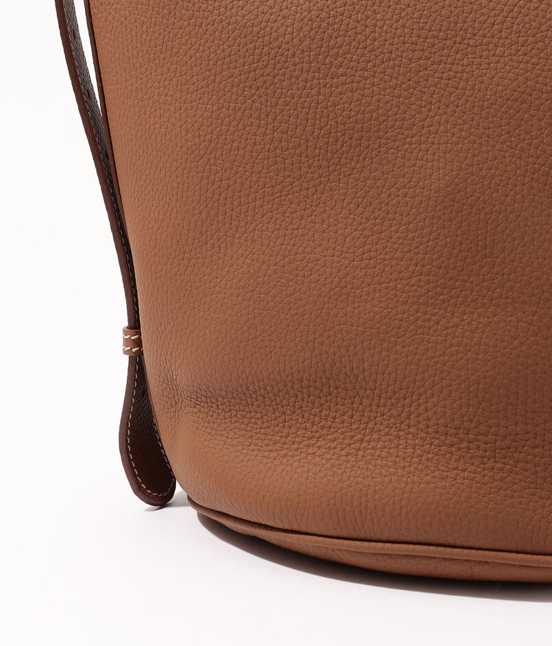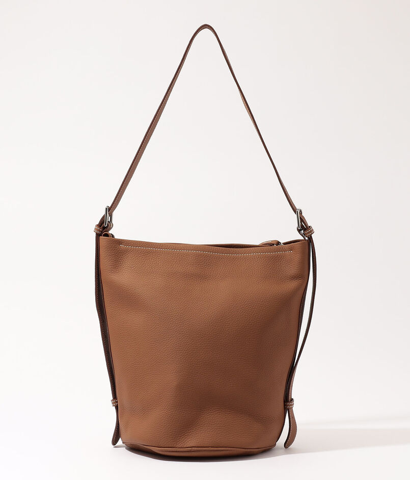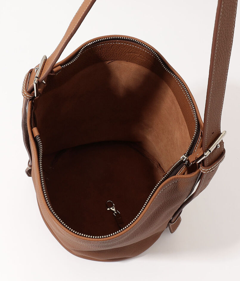 強度がありながらも、自然なシボ感と柔らかさを活かしており、身体に馴染むシルエットが魅力のバケット型バッグです。