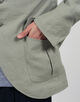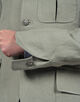 袖口のスリットや背中のアクションプリーツ、バックベルトなど、ハンティングジャケットの要素を取り入れたデザインが特徴です。