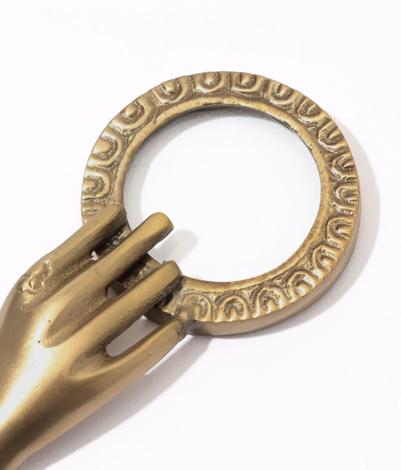 エレガントなハンドモチーフに透明なガラスレンズを備えた洗練された拡大鏡。