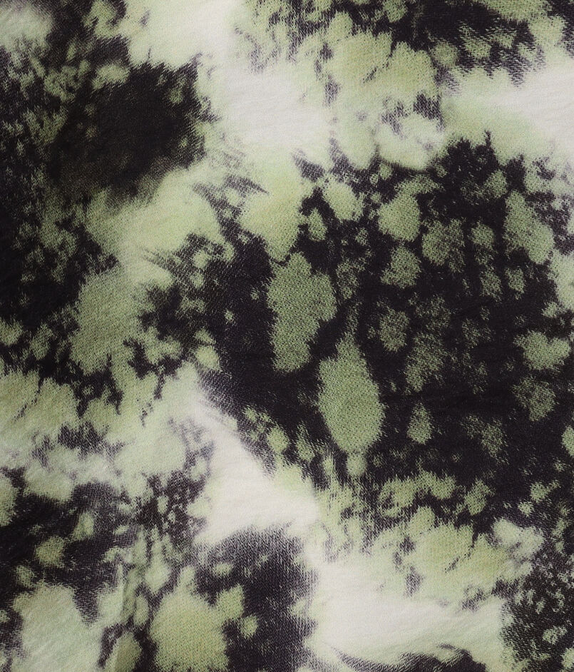 深みのあるモスグリーン、アイボリー、そしてシャドーブラックの有機的なフォルムと融合し、まるで絵画のような流麗な印象を与えてくれる一枚。