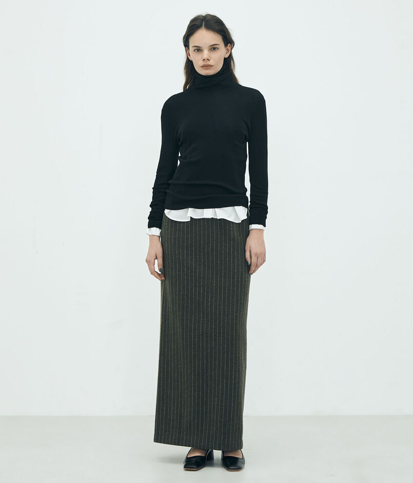 ミニマルなシルエットのストレートなミディ丈スカート。
