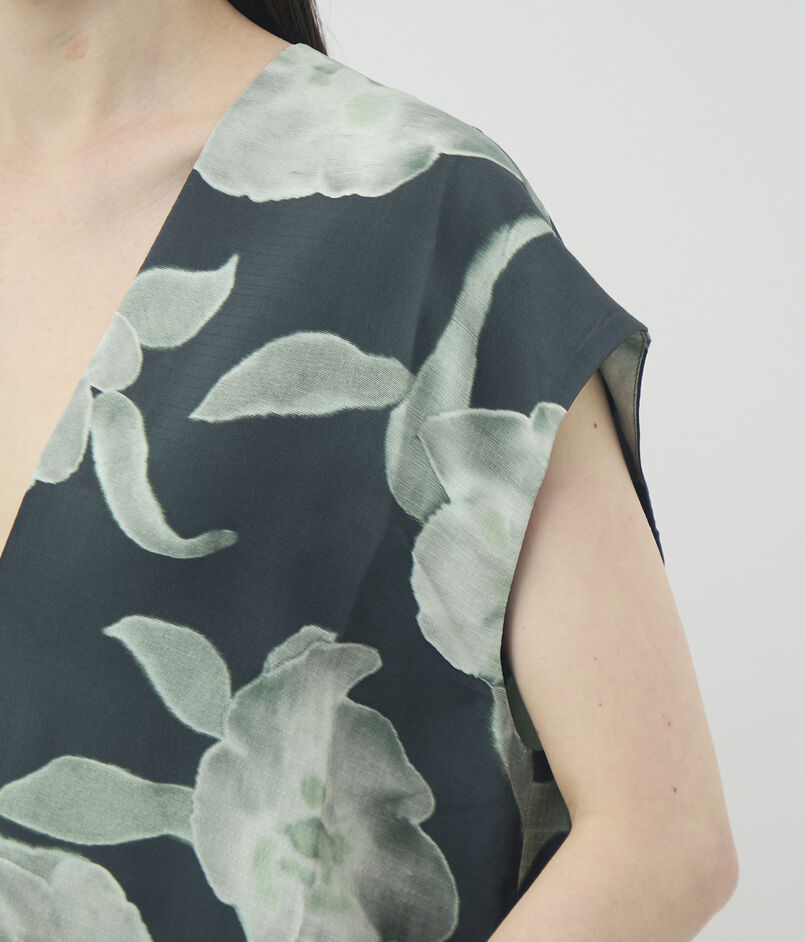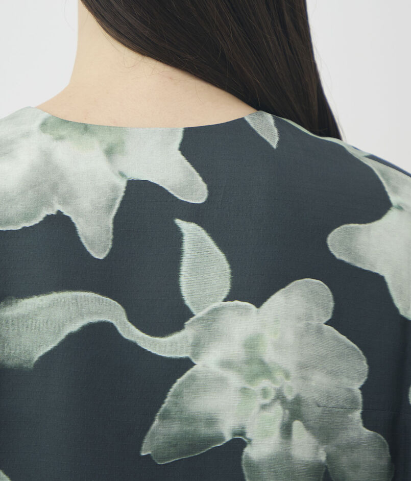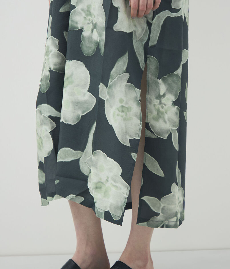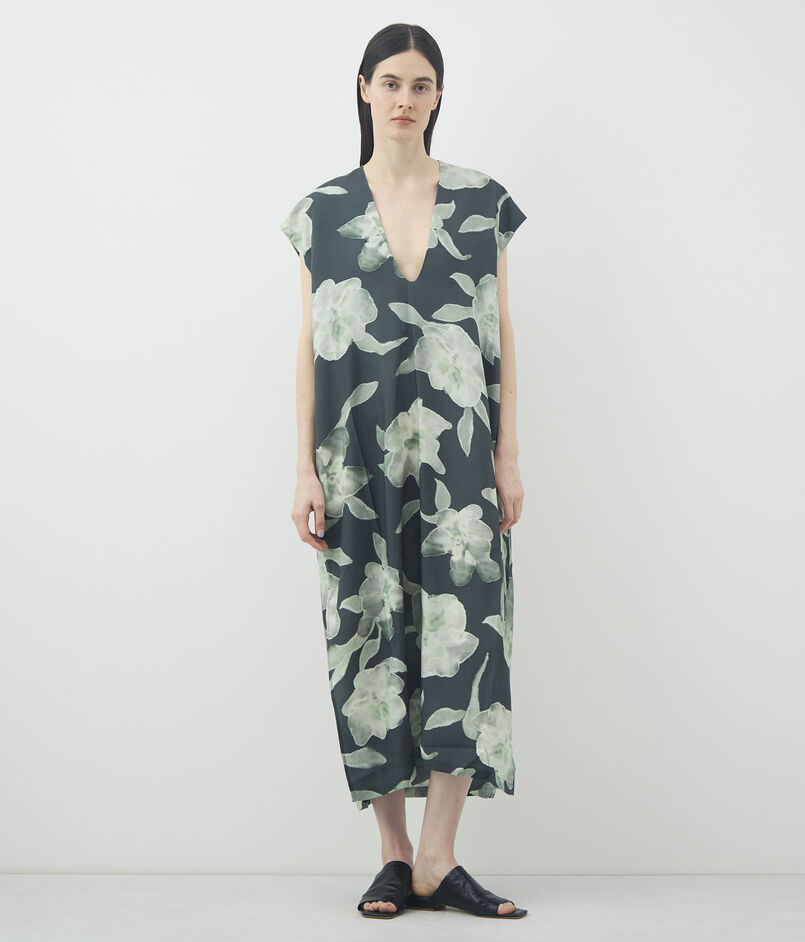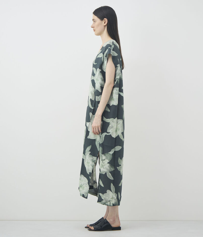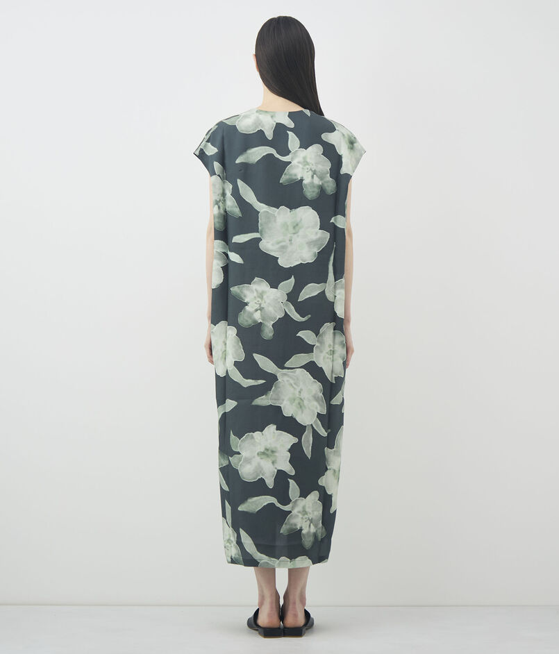 シルクで仕立てられたフローラルプリントのドレス。