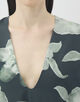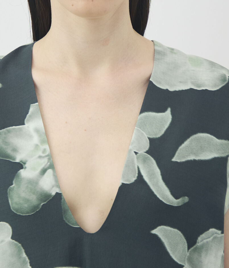 体に沿って流れるように揺れるドレープを生み出し、建築的な精密さと着心地の良さを兼ね備えています。