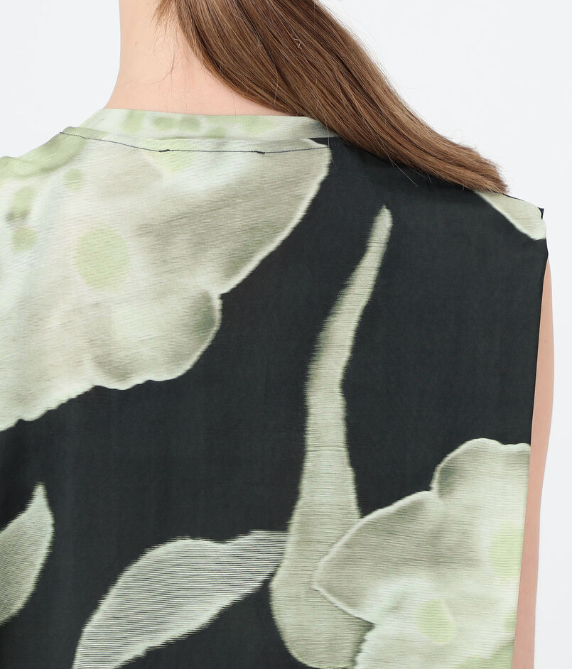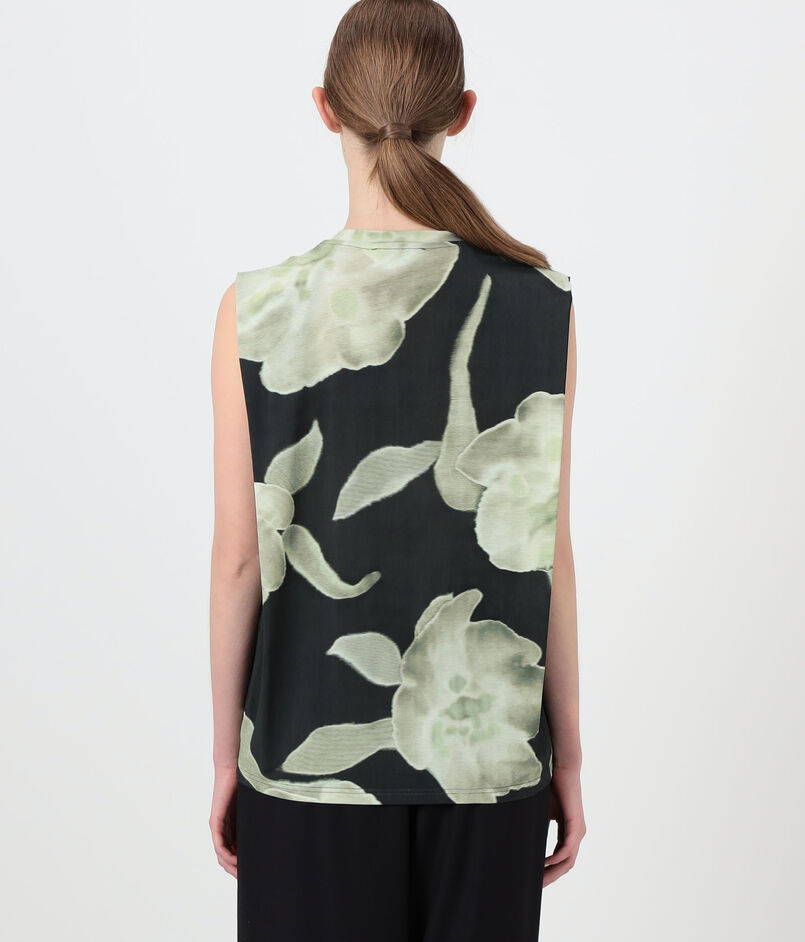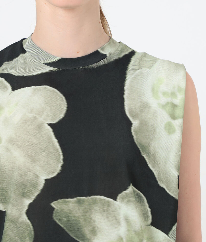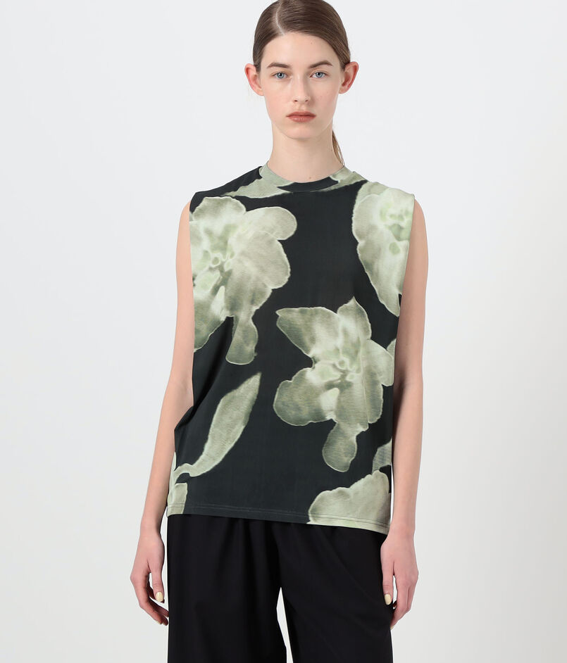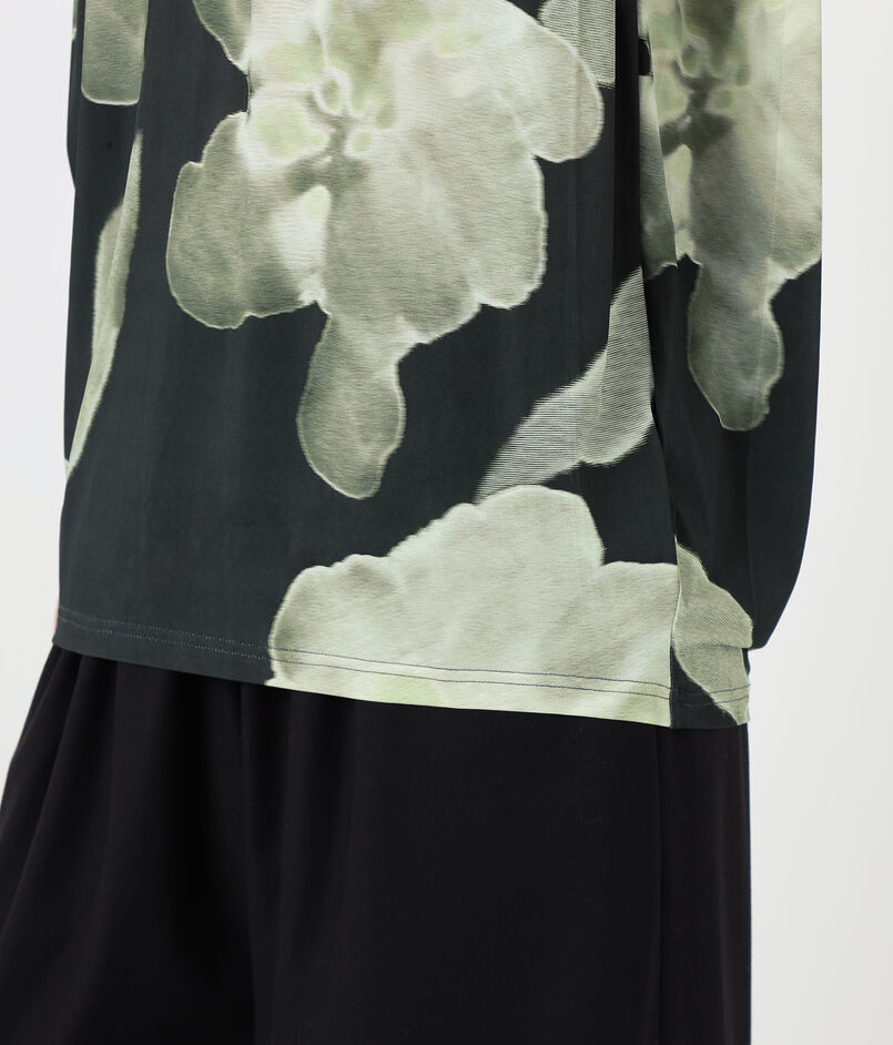 フラワープリントがスタイリングのアクセントになりながらも、クリーンなラインと丁寧な仕立てにより、単品ではもちろんレイヤードスタイルにも取り入れやすい一着に仕上げています。