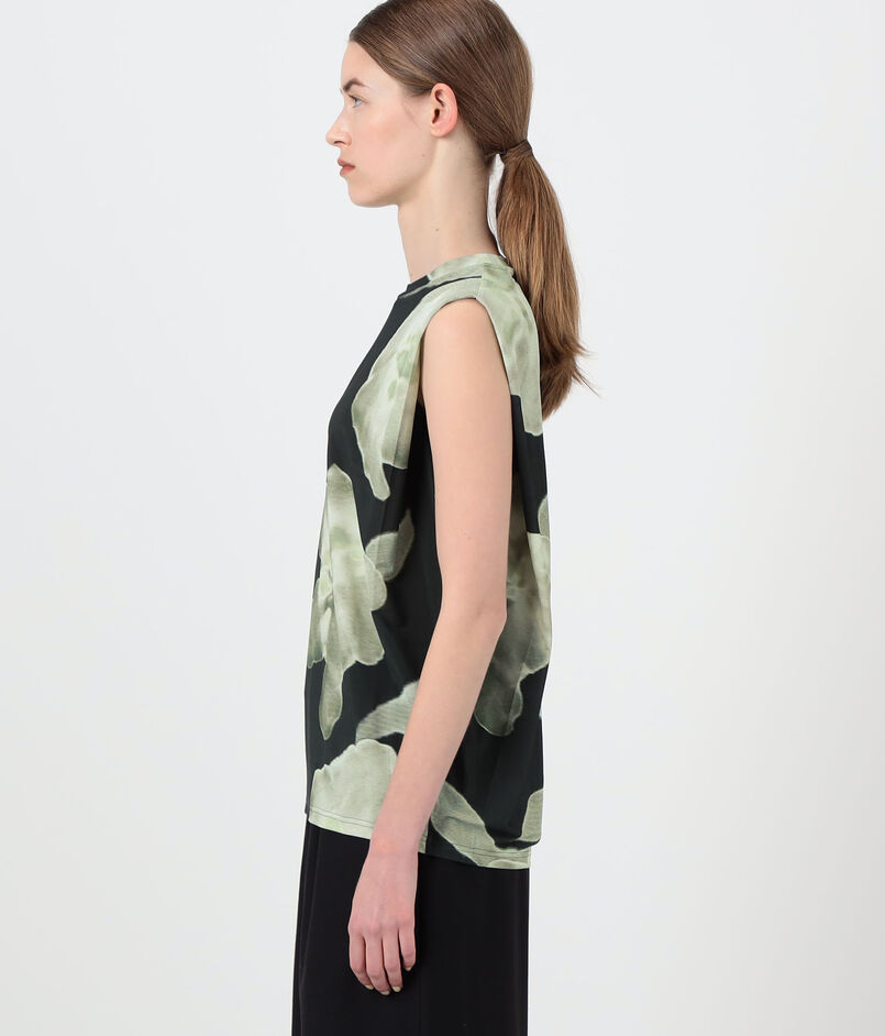 さりげない立体感でサイドに表情を添える、ノースリーブのジャージートップ。