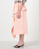 折りのディテールが生み出す立体的なAラインシルエットが美しく、動きのある表情を演出します。