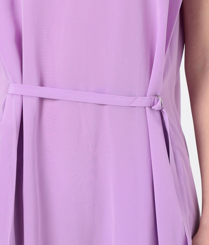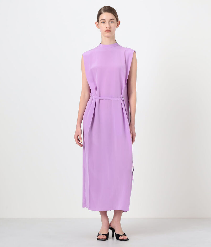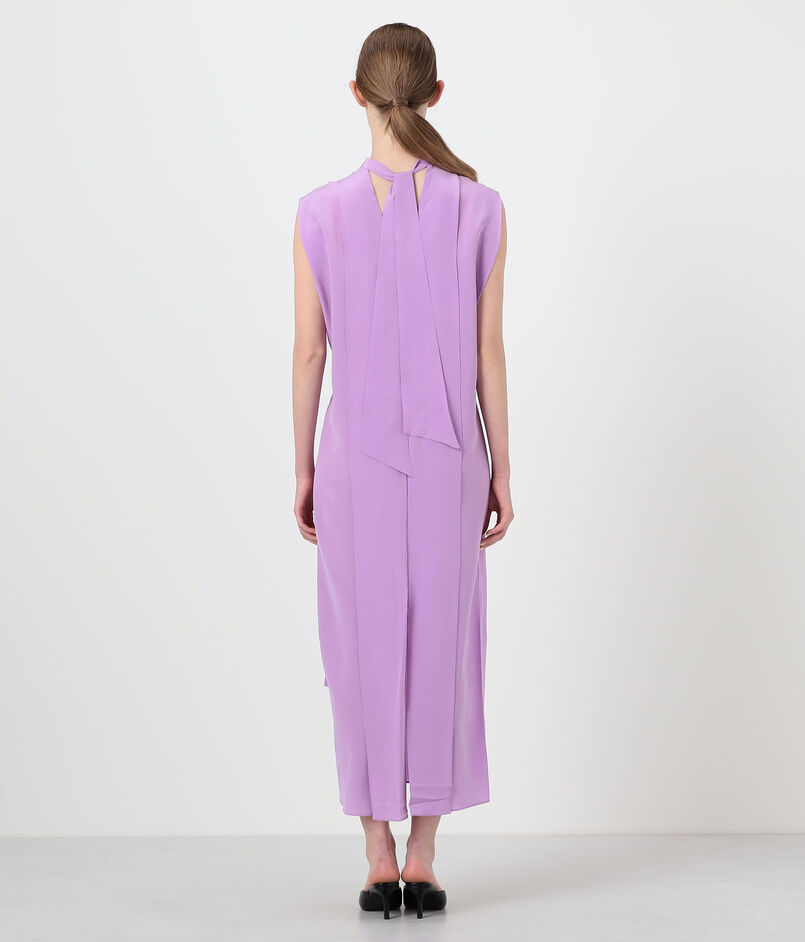 バックスタイルのボウタイが品よく印象的な、スリーブレスドレス。