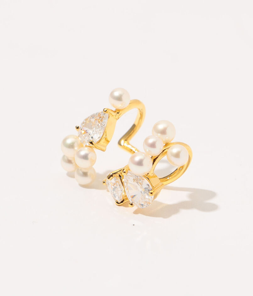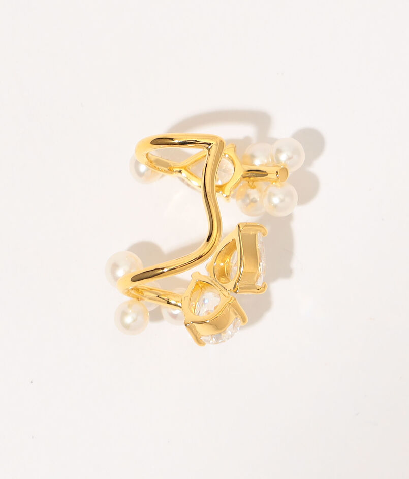 淡水パールとホワイトジルコニアをあしらったシックでエレガントなイヤーカフ。
