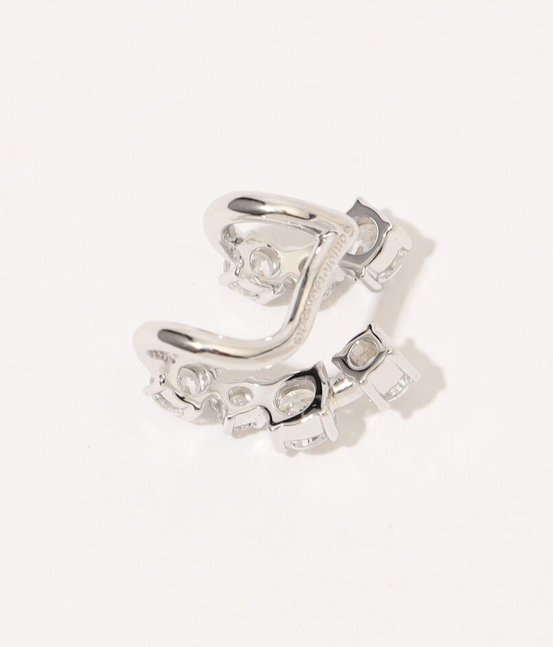 キュービックジルコニアがあしらわれた、リサイクルシルバー製のイヤーカフ。