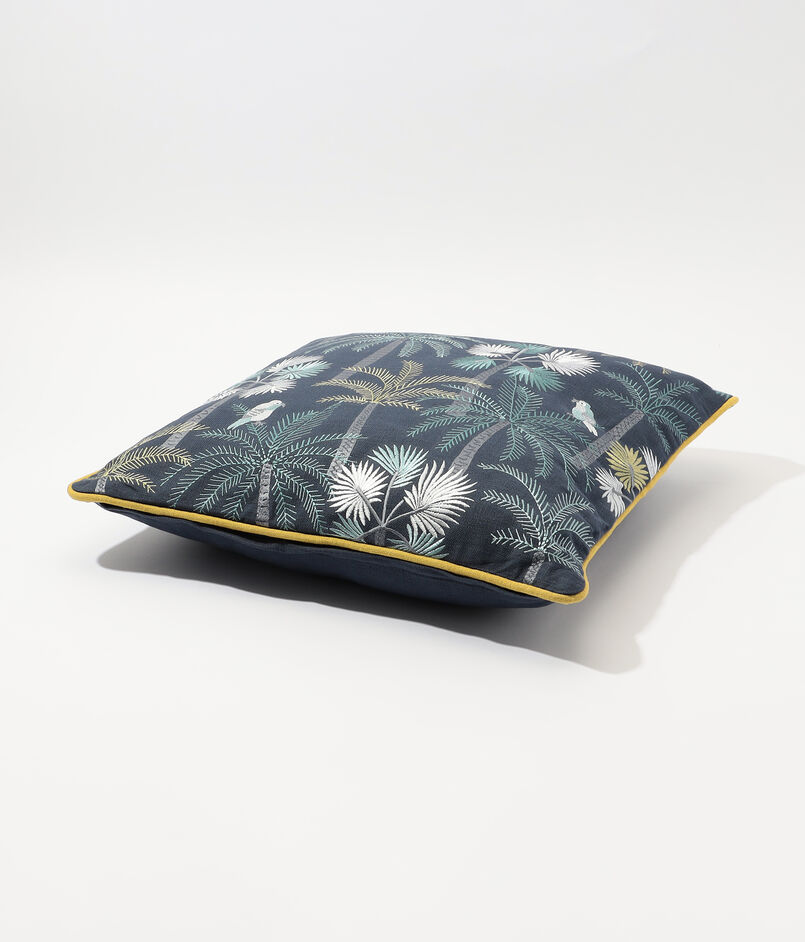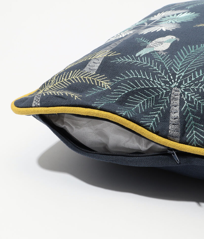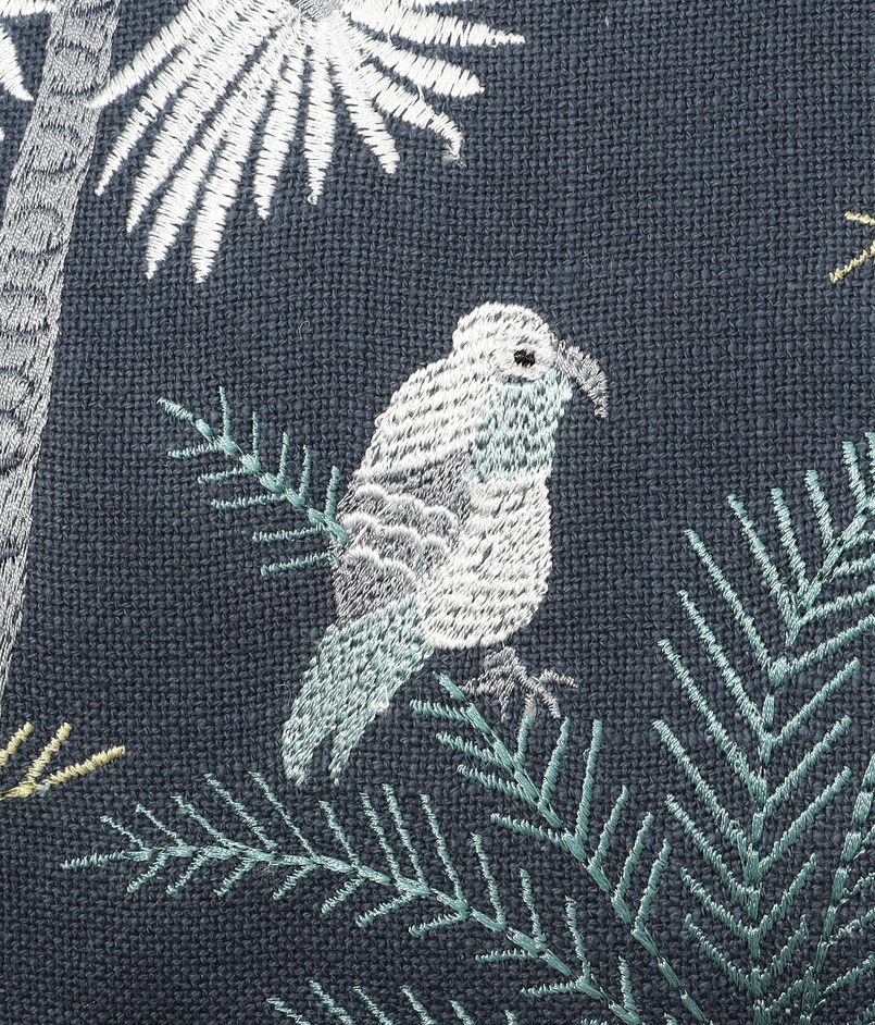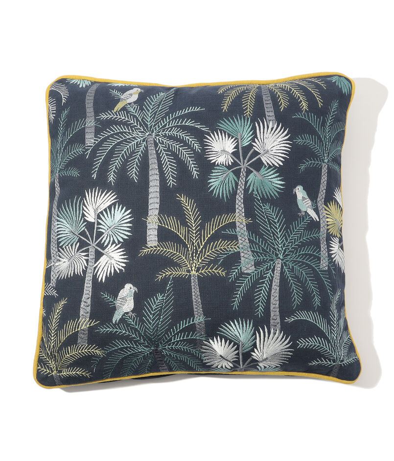 刺繍がほどこされたクッションやポーチは、様々な色味の色糸を用い、