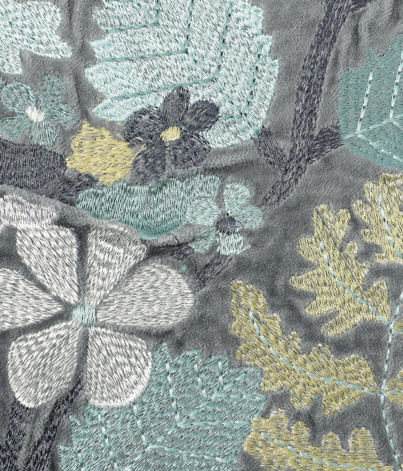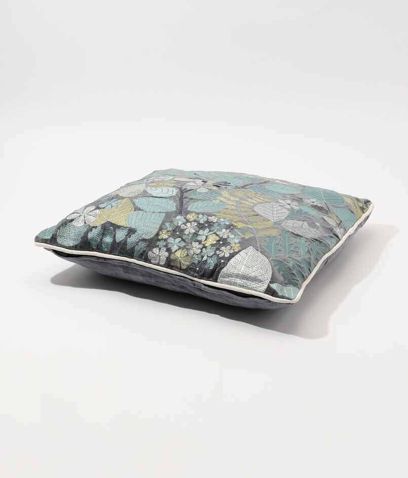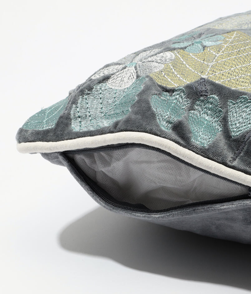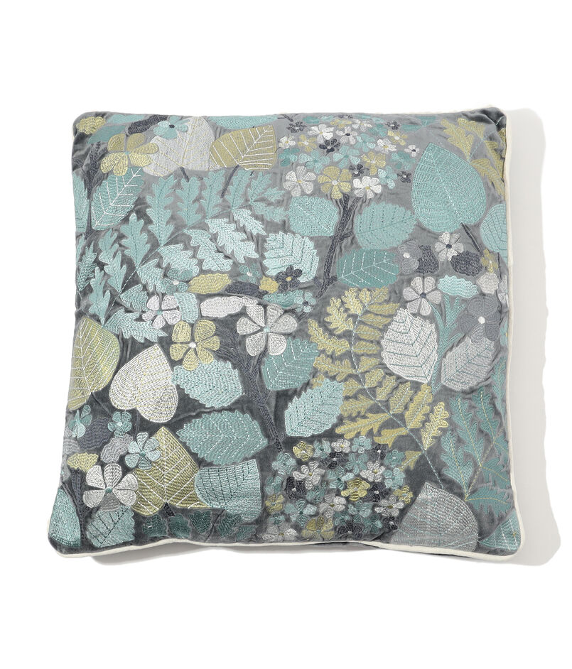 刺繍がほどこされたクッションやポーチは、様々な色味の色糸を用い、