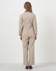 ややタイトなトップスは極端なクロップ丈、パンツは尻周りがキュッとしていてストレートに落ちるワイドシルエット。
