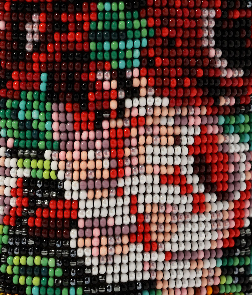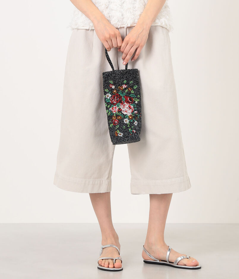 ビーズで表現されたフラワーモチーフと愛らしいボトル型のデザインが特徴のハンドメイドアイテムです。
