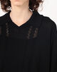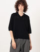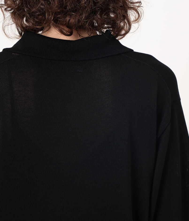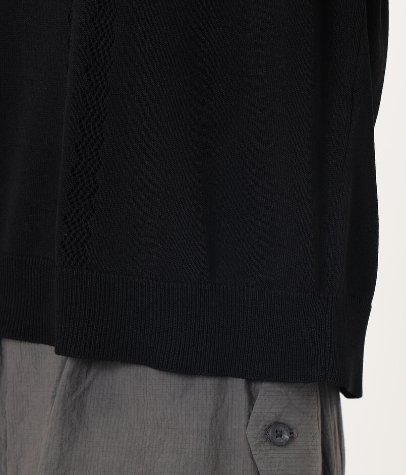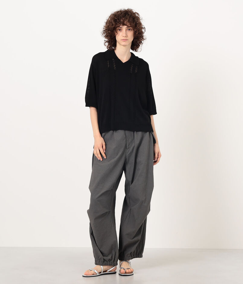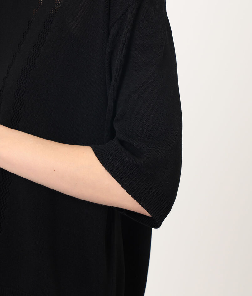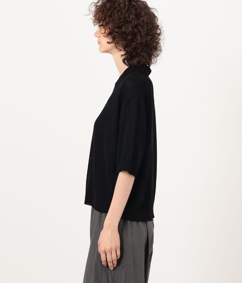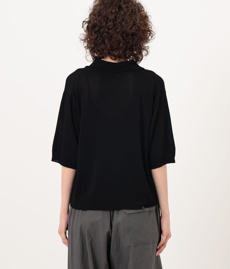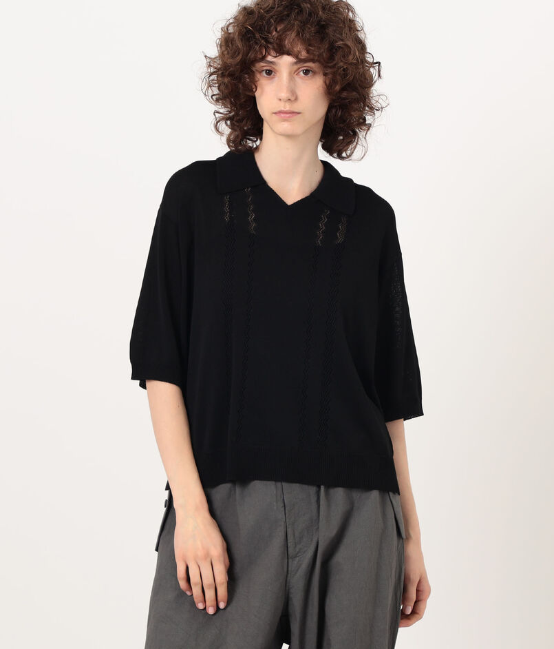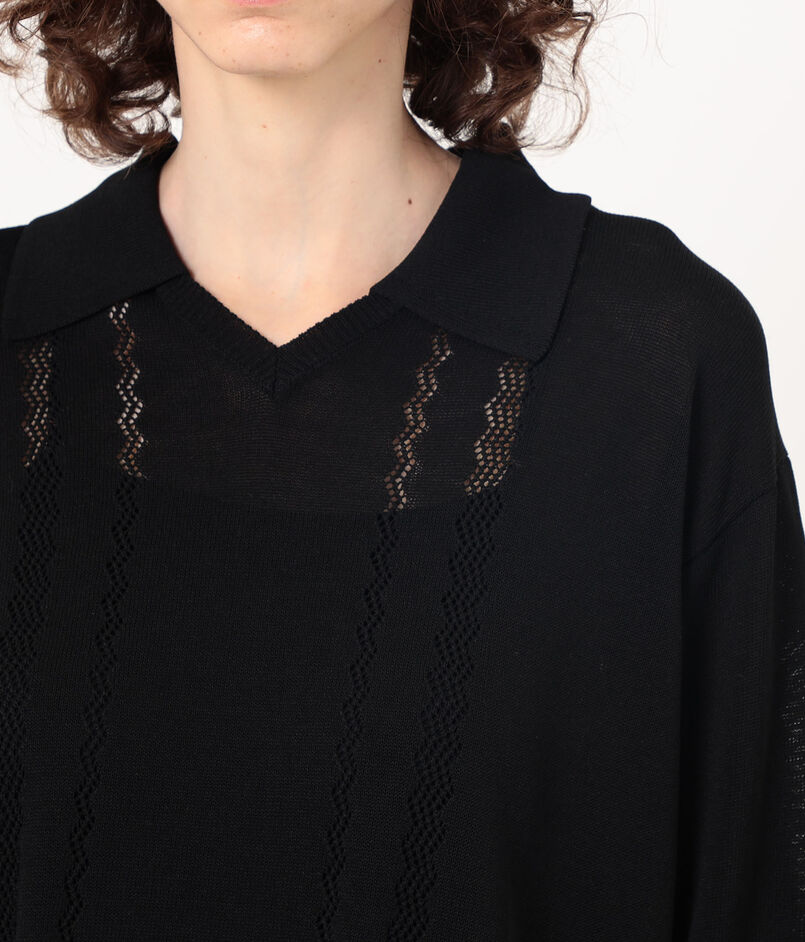 繊細な透かし編みが涼しげな印象のポロカラーニット。