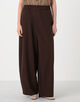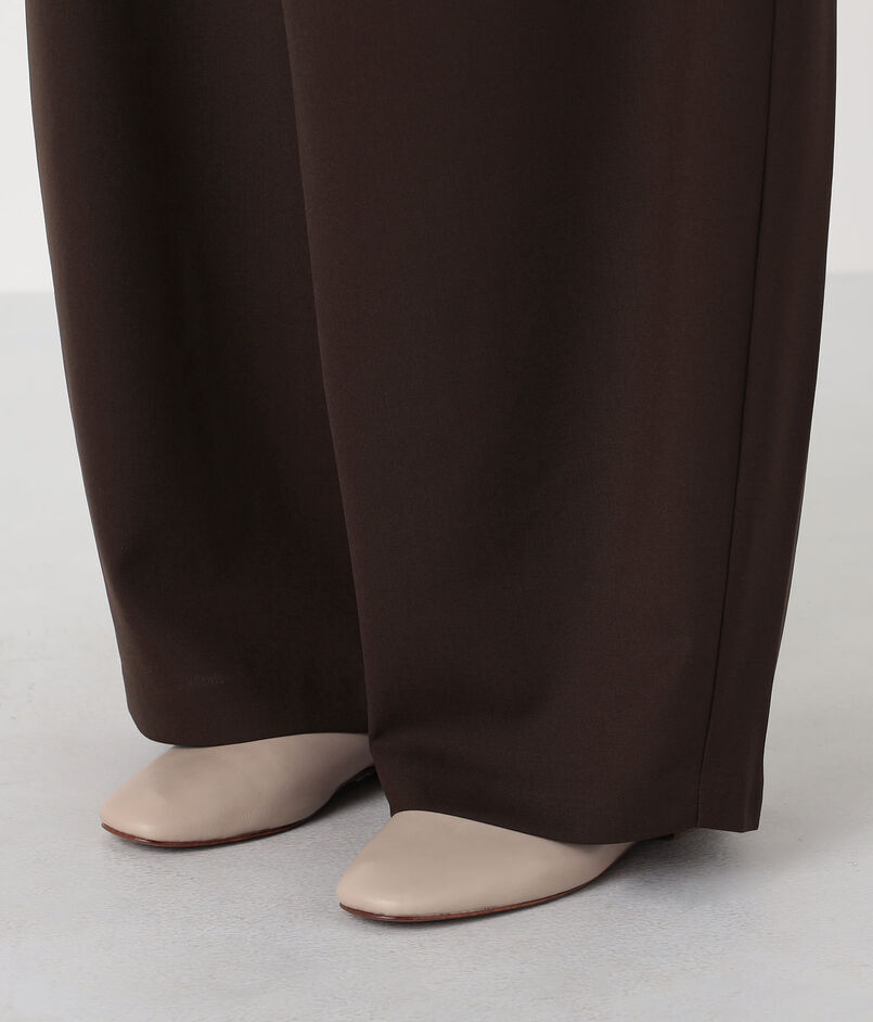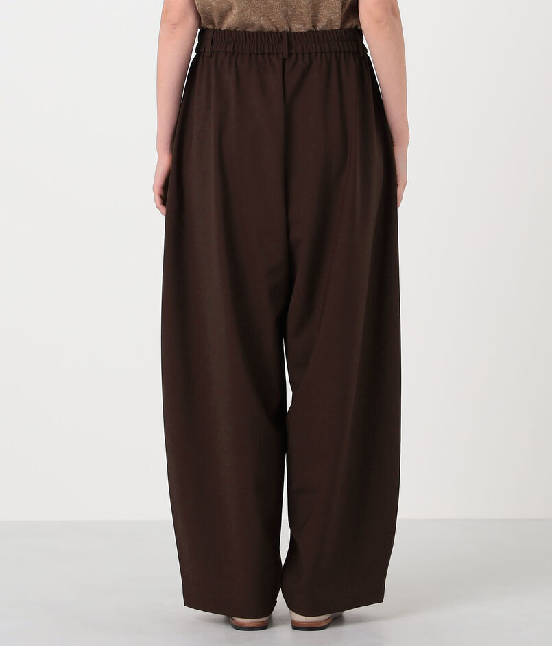 フロントのオーバーラップディテールとエレガントなバレルシルエットが美しいパンツ。