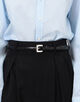 装い全体をクラスアップさせ、タイムレスなエレガンスを宿す〈Dehanche〉のベルト。