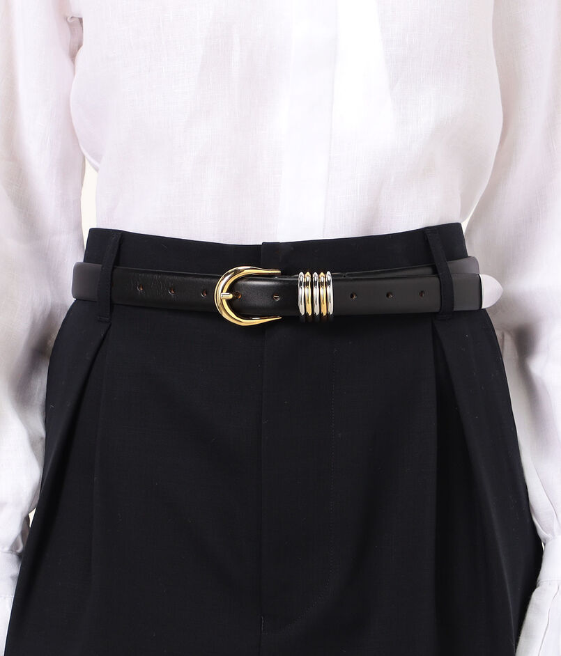 〈Dehanche〉を象徴する、リングの装飾が目を惹くシグネチャースタイルのベルト。