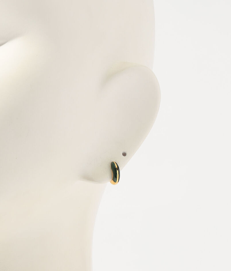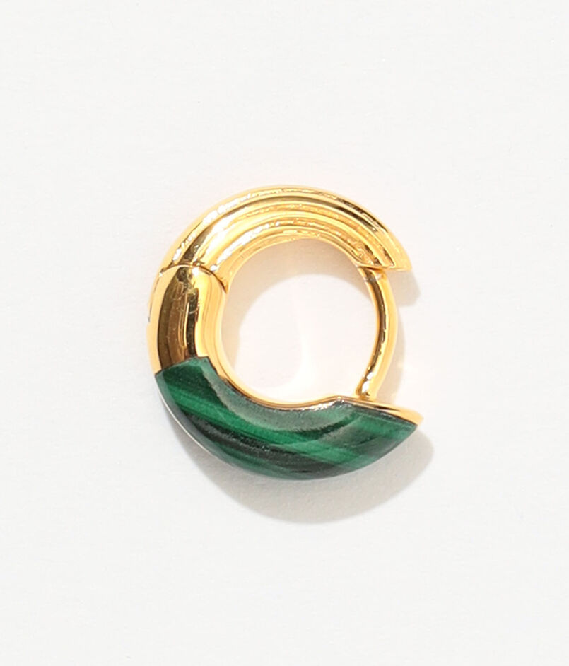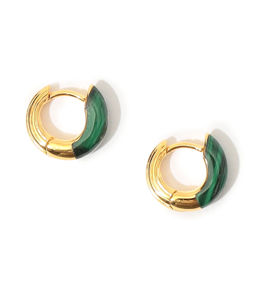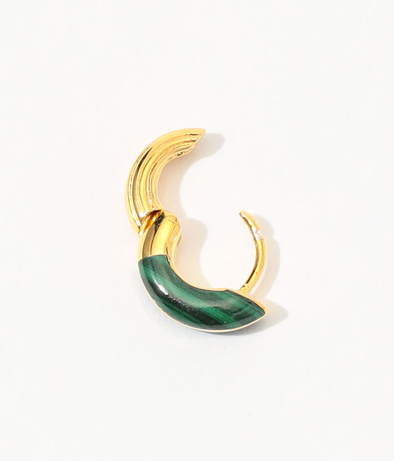 鮮やかなグリーンのマラカイトが弧を描く三日月形のフープピアス。