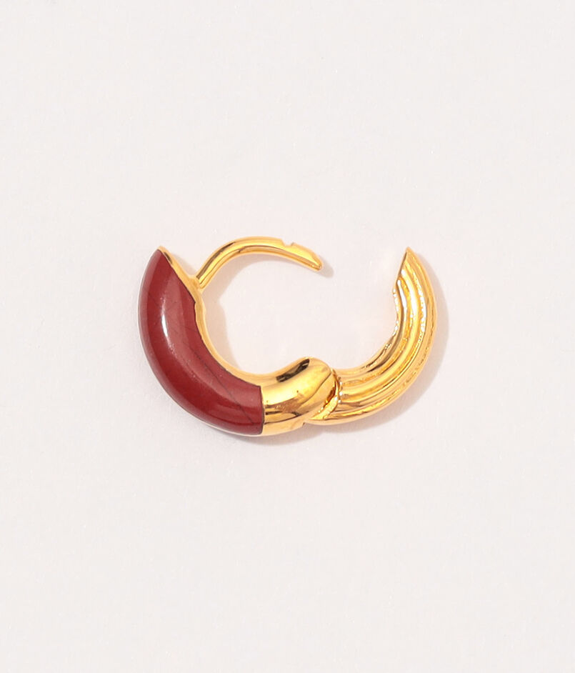 繊細なリッジが刻まれたアシンメトリーなアーチフォルムは、耳たぶをやさしく包み込むように沿いながら、わずかにサイズが変化する構造。