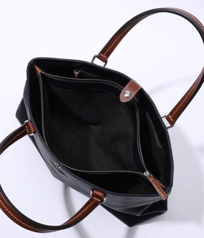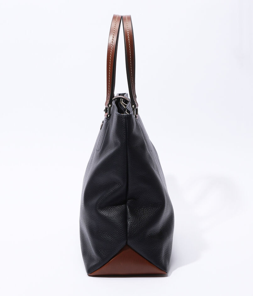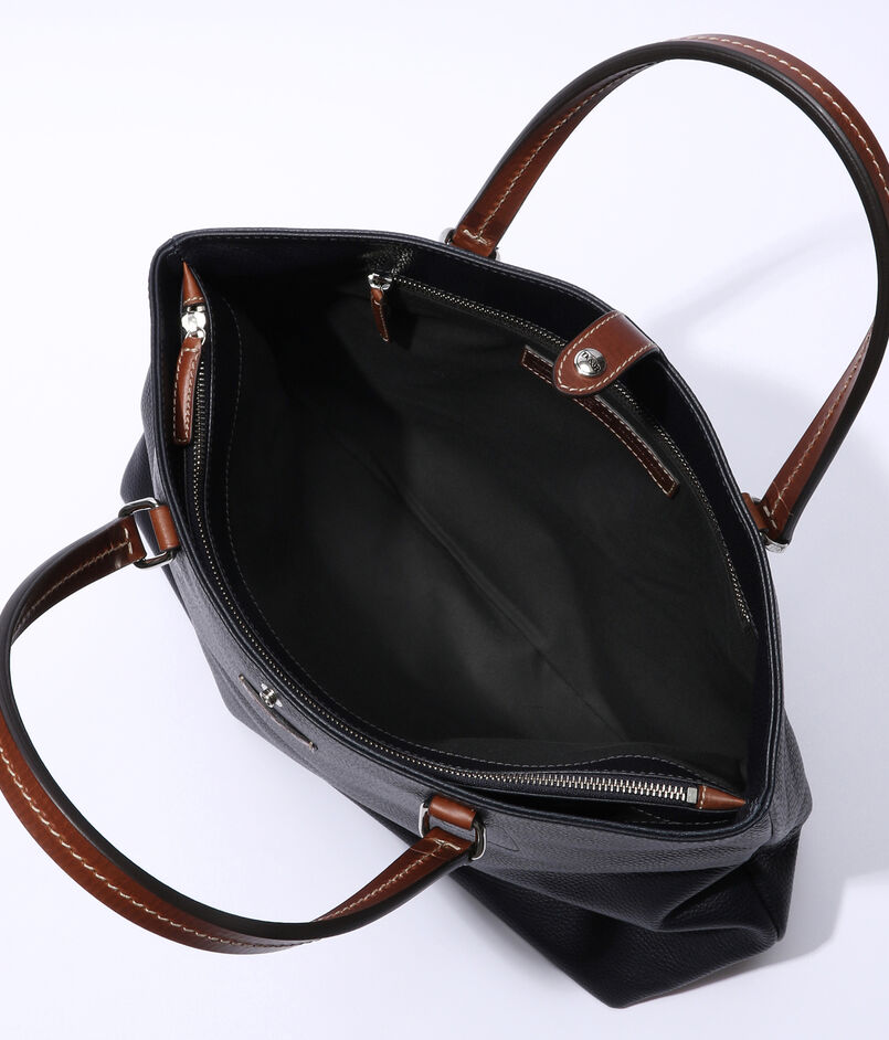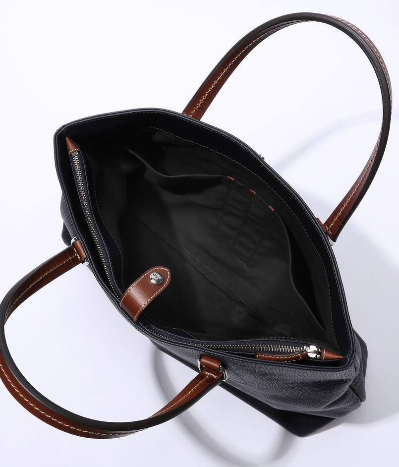 ハンドルの付け根の金具使いや底鋲、ジップ仕様のコンパートメントなど、堅牢性と機能性を兼ね備えたオンオフ問わず使えるトートバッグに仕上げました。