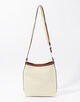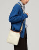 柔らかなオフホワイトに、タンカラーのトリミングを施すことで、インラインで展開するコレクションに比べ、クラシカルで上品な印象に仕上げました。