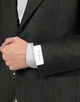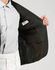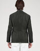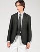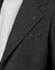 モデルは低め設定のゴージラインとフロントボタンのバランス、ワイドラペルを見事なバランスでクラシックの範疇でまとめたシングル3Bジャケット。丸みがあり、なで肩気味の肩回りがモダンな印象を与えます。