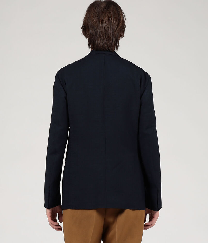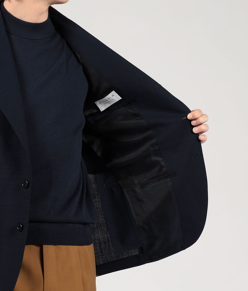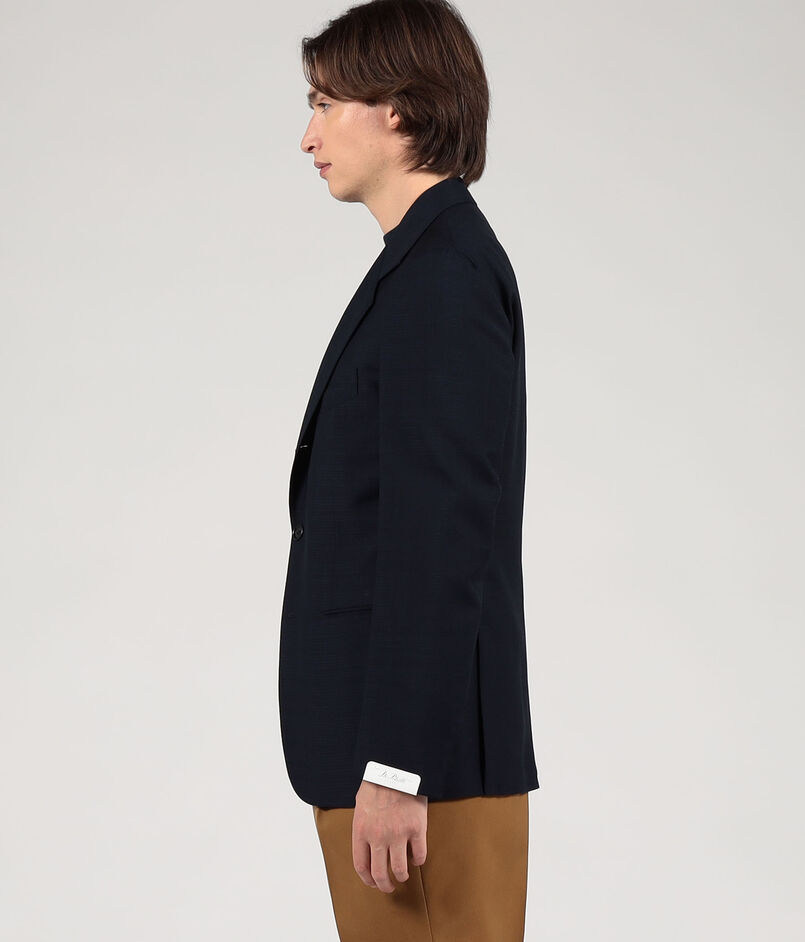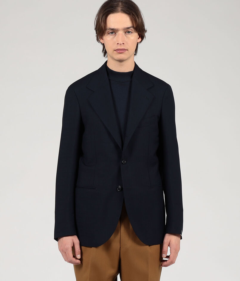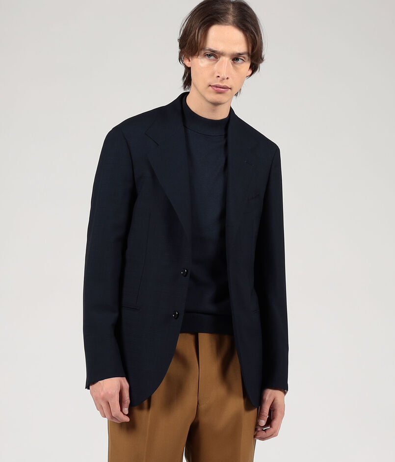 ナポリのファクトリーブランド〈De Petrillo〉によるハンドメイドを多く用いた軽い着心地、人体の曲線に馴染む丸みのある仕立てが特徴の別注ジャケット。