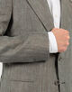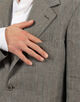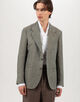 モデルは低め設定のゴージラインとフロントボタンのバランス、ワイドラペルを見事なバランスでクラシックの範疇でまとめたシングル3Bジャケット。